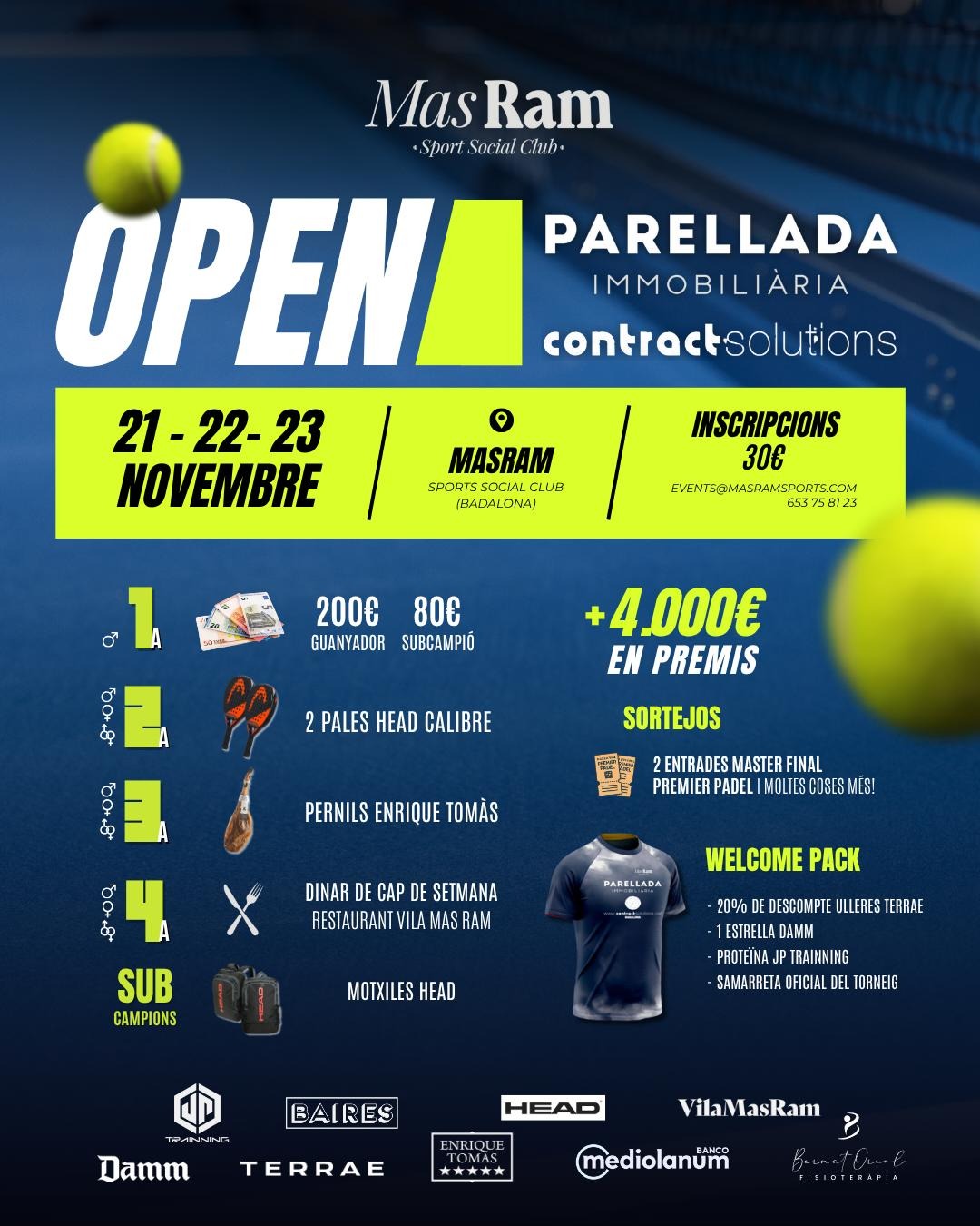 Mas Ram Sports, Plaça Eucaliptus 3. Badalona 08916 21,22,23 de novembre Categories: Masc. 1ª, 2ª, 3ª i 4ª Fem i mixta: ...