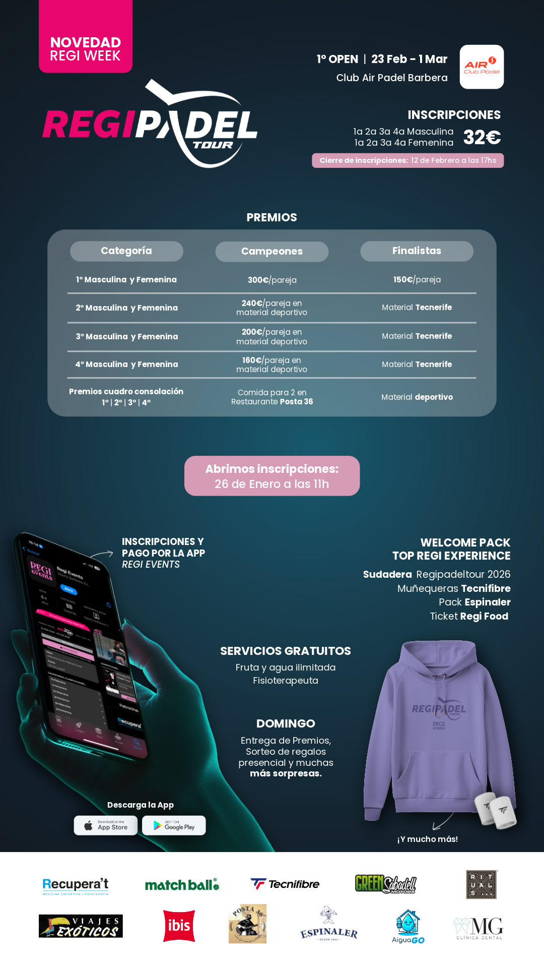 🎾 1er Torneo Open del Circuito Regipadeltour 2026🎾 📅 Fecha: del 23 de Febrero al 1 de Marzo del 2026 📍 Lugar: Air club padel (Barberà de...