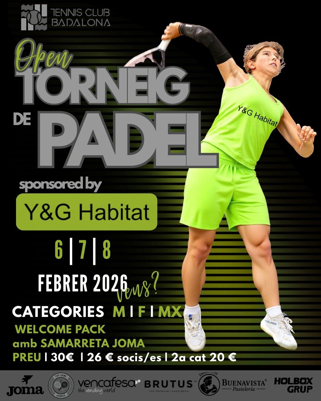🎁 Premis 🥇 1a: 250 € 🥈 2a: Pales de pàdel 🥉 3a: Pernils 🏅 4a: Bossa JOMA 👕 Welcome pack amb samarreta JOMA per a tots els participants...