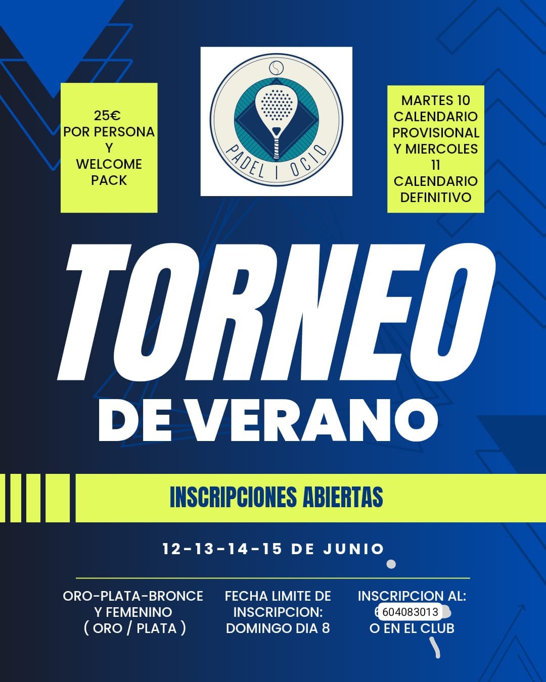 INSCRIPCION 25€ JUGADOR--15€ SEGUNDA INSCRIPCION. JUEGOS A DOS SETS Y CASO DE EMPATE SUPER TIE BREAK. TODOS CON PUNTO DE ORO. LAS FINALES A TRES S...