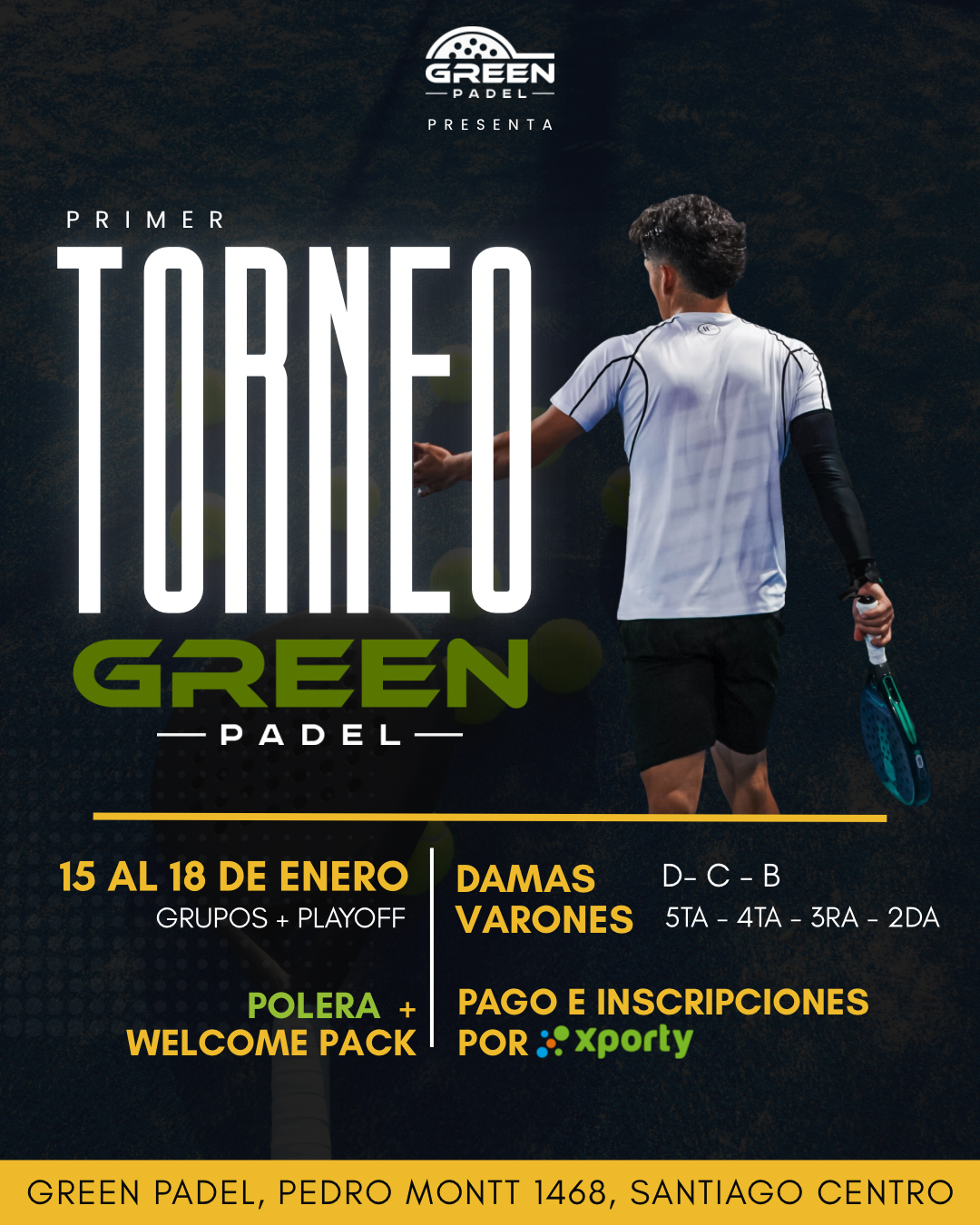 ¡Primer Green Padel Fest! Categorías: Mujeres B, C y D. Hombres 2da, 3era, 4ta y 5ta. Welcome Pack, hidratación, auspiciadores, tremendos pr...