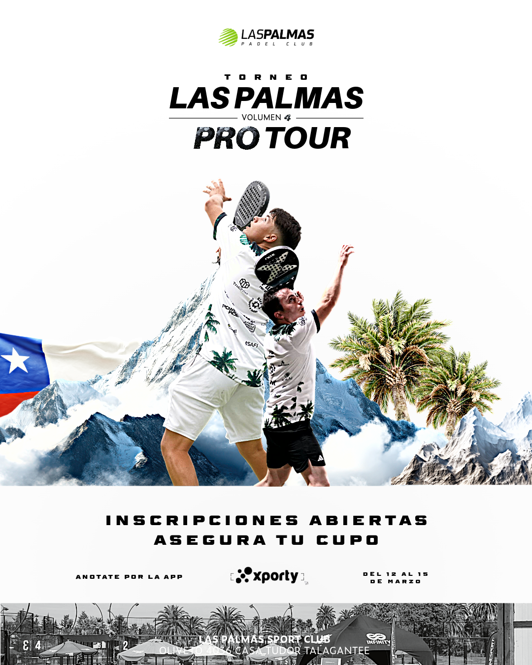 BIENVENIDO A LAS PALMAS PRO TOUR VOLUMEN 4 Realizado en: Las Palmas Sport Club dirección; casa tudor, oliveto talagante RM Numero de contacto: ...