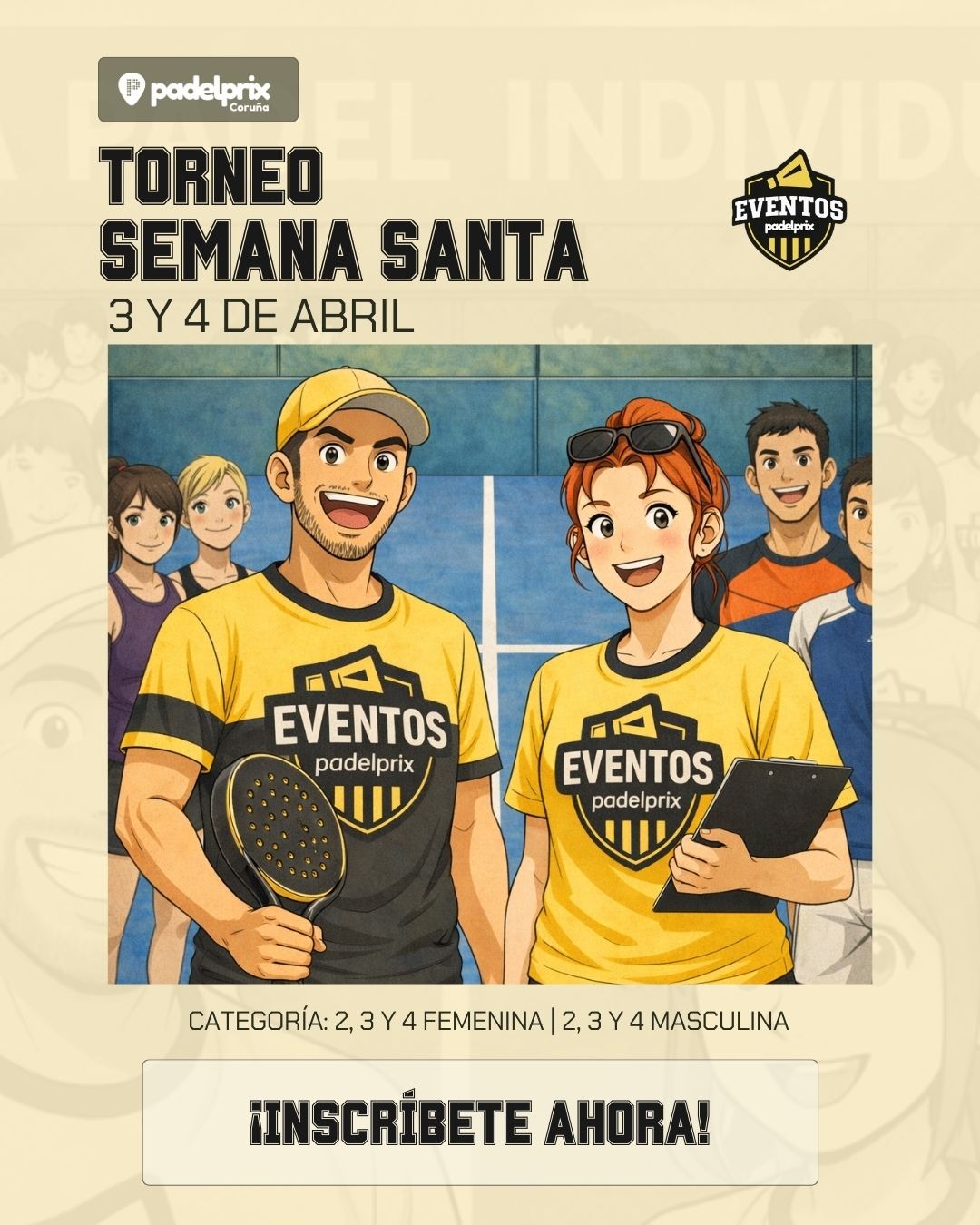 Sábado 4 de abril y domingo 5 de abril Categorías disponibles: 3ª y 4º Masculina 3º y 4ª femenina 3ª Mixta Mínimo 8 parejas por categoría p...