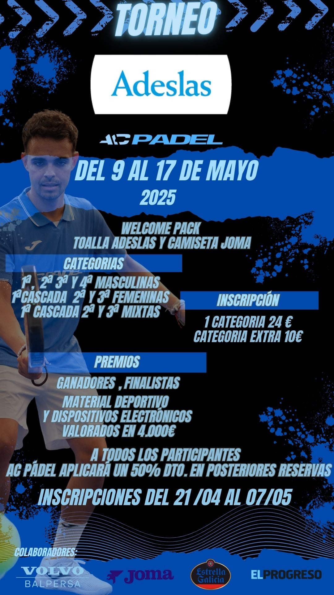 SUPER LIGA AC PÁDEL VODAFONE Partidos al mejor de 3 set´s con tie breack en cada uno de ellos y bola de oro. Cada categoría juegan todos contra t...