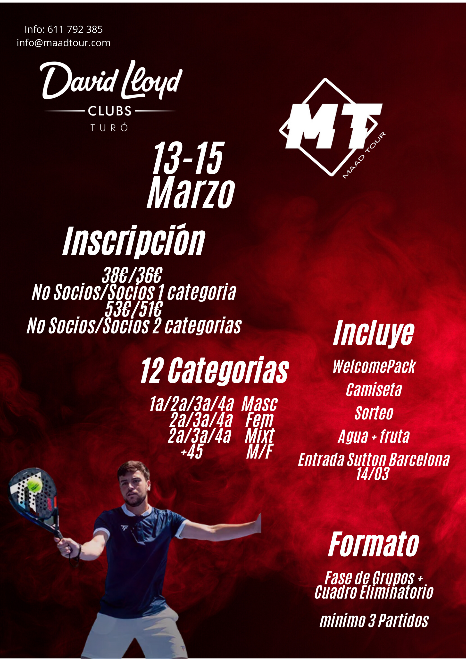 đź“… Fechas: 6 - 9 de Noviembre 2025 📍 Lugar: David Lloyd Gavá Mar INSCRIPCIONES: 33€/30€ por persona (1 categorĂa) 48€/45€ por persona (2 cat...