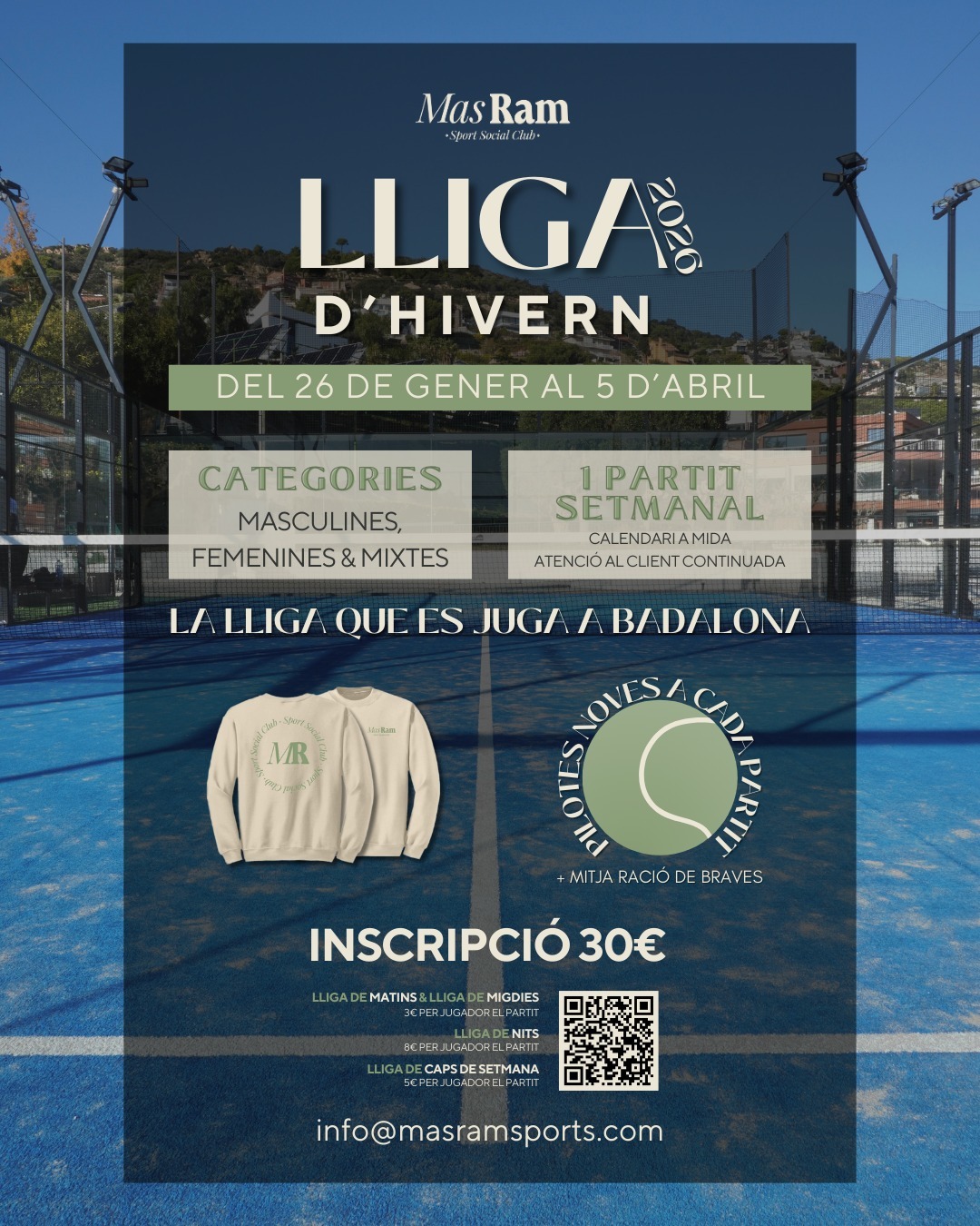 Mas Ram Sports, Plaça Eucaliptus 3. Badalona 08916 21,22,23 de novembre Categories: Masc. 1ª, 2ª, 3ª i 4ª Fem i mixta: ...