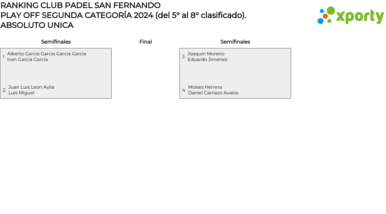 Main bracket - PLAY OFF SEGUNDA CATEGORÍA 2024 (del 5° al 8° clasificado) - ABSOLUTO UNICA