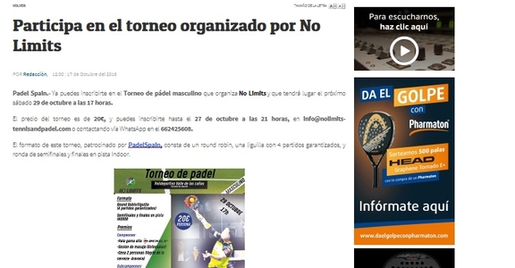 NO LIMITS TENNIS PADEL CLUB on the October 21, 2016, 12:45 PM . read 356 times