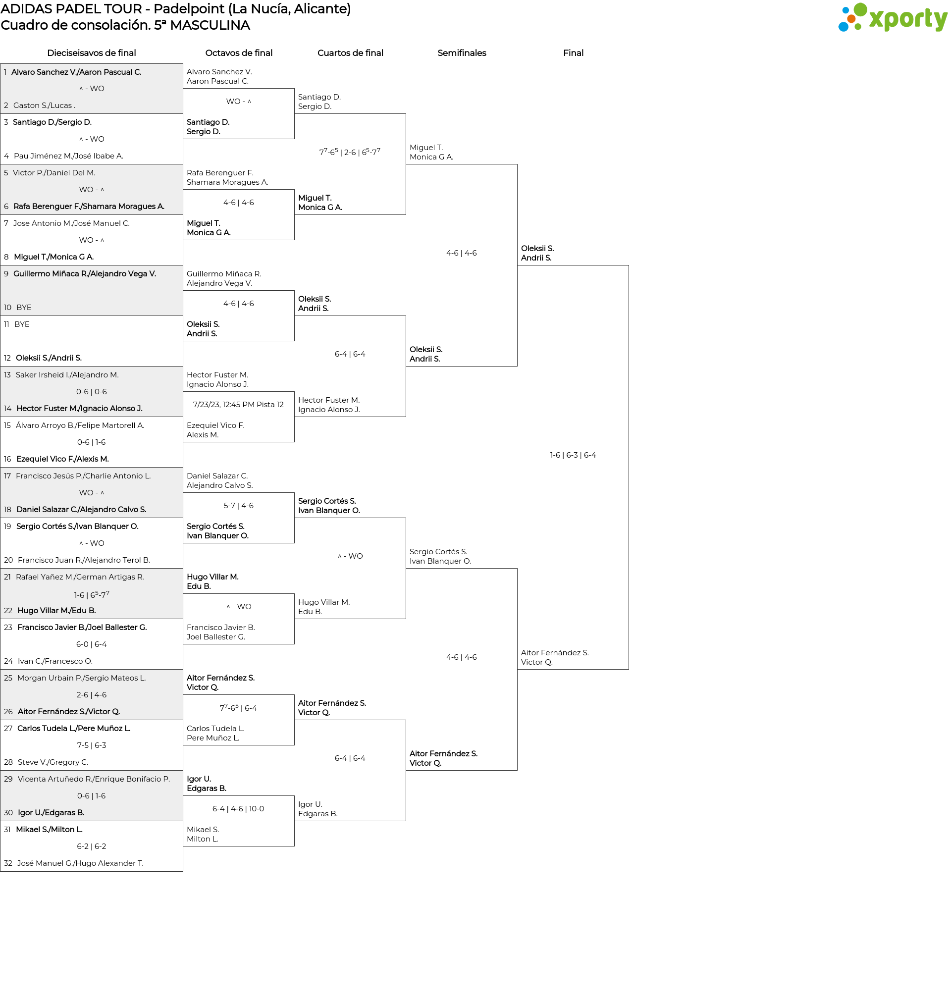 5ª MASCULINA main bracket