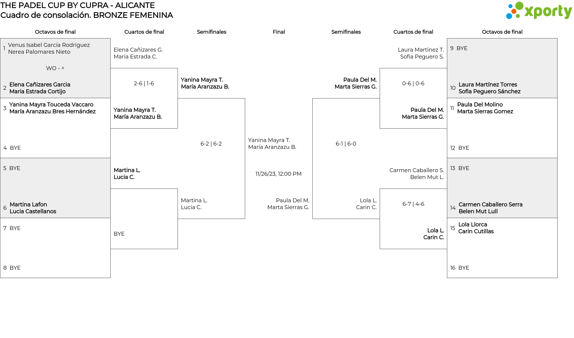 BRONZE FEMENINA main bracket