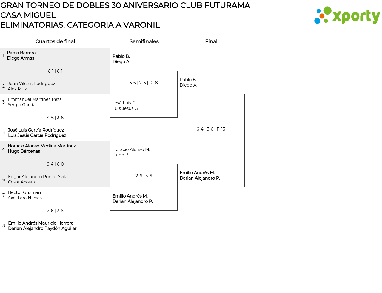 GRAN TORNEO DE DOBLES 30 ANIVERSARIO CLUB FUTURAMA CASA MIGUEL