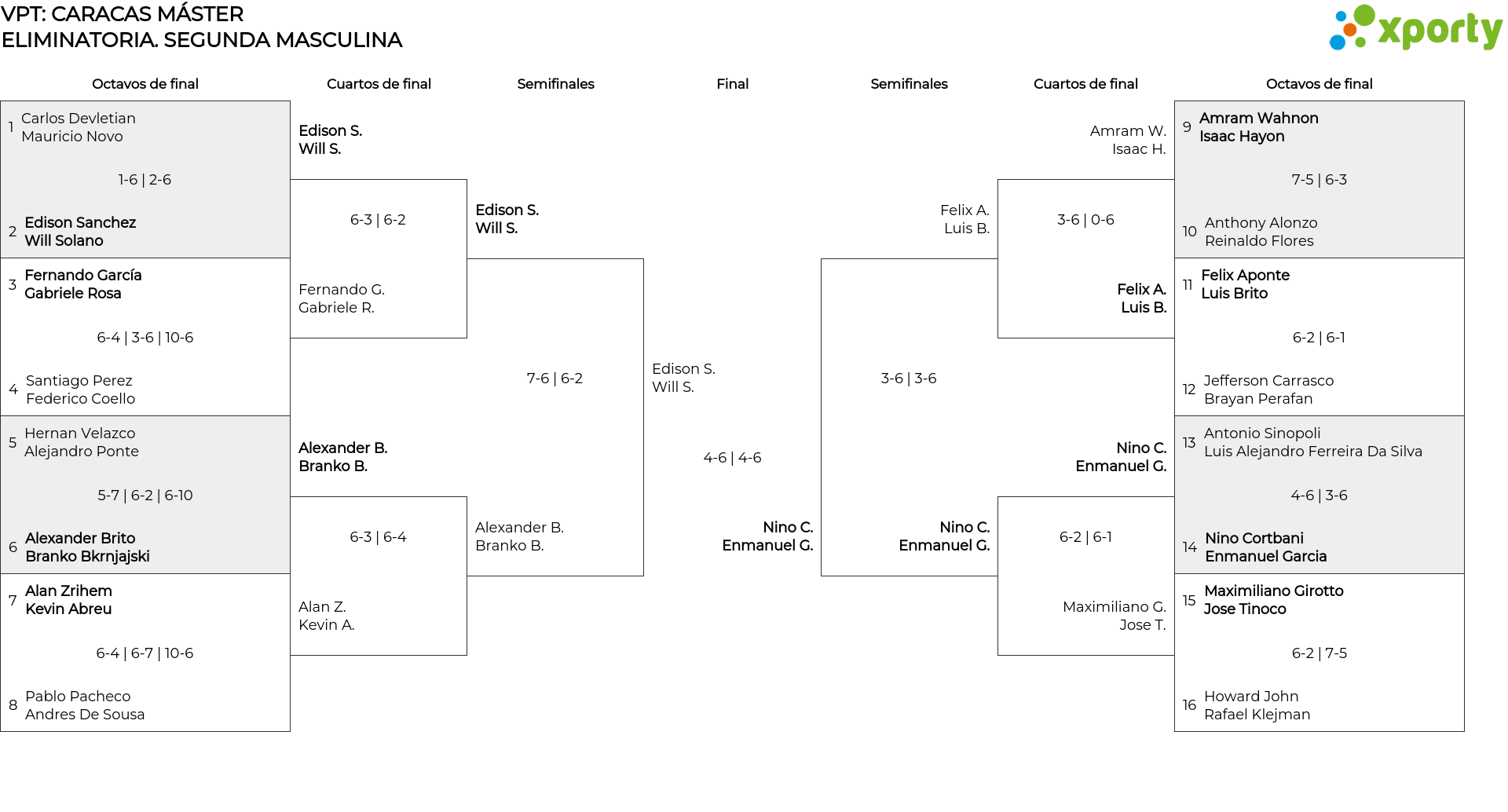 1era Femenino 1era Masculino 2da Femenino 2da Masculino 3era Femenino 3era Masculino 4ta Femenino 4ta Masculino 5ta Femenino 5ta Masculino 6ta Femenino 6ta Masculino 7ma Masculino Pro
