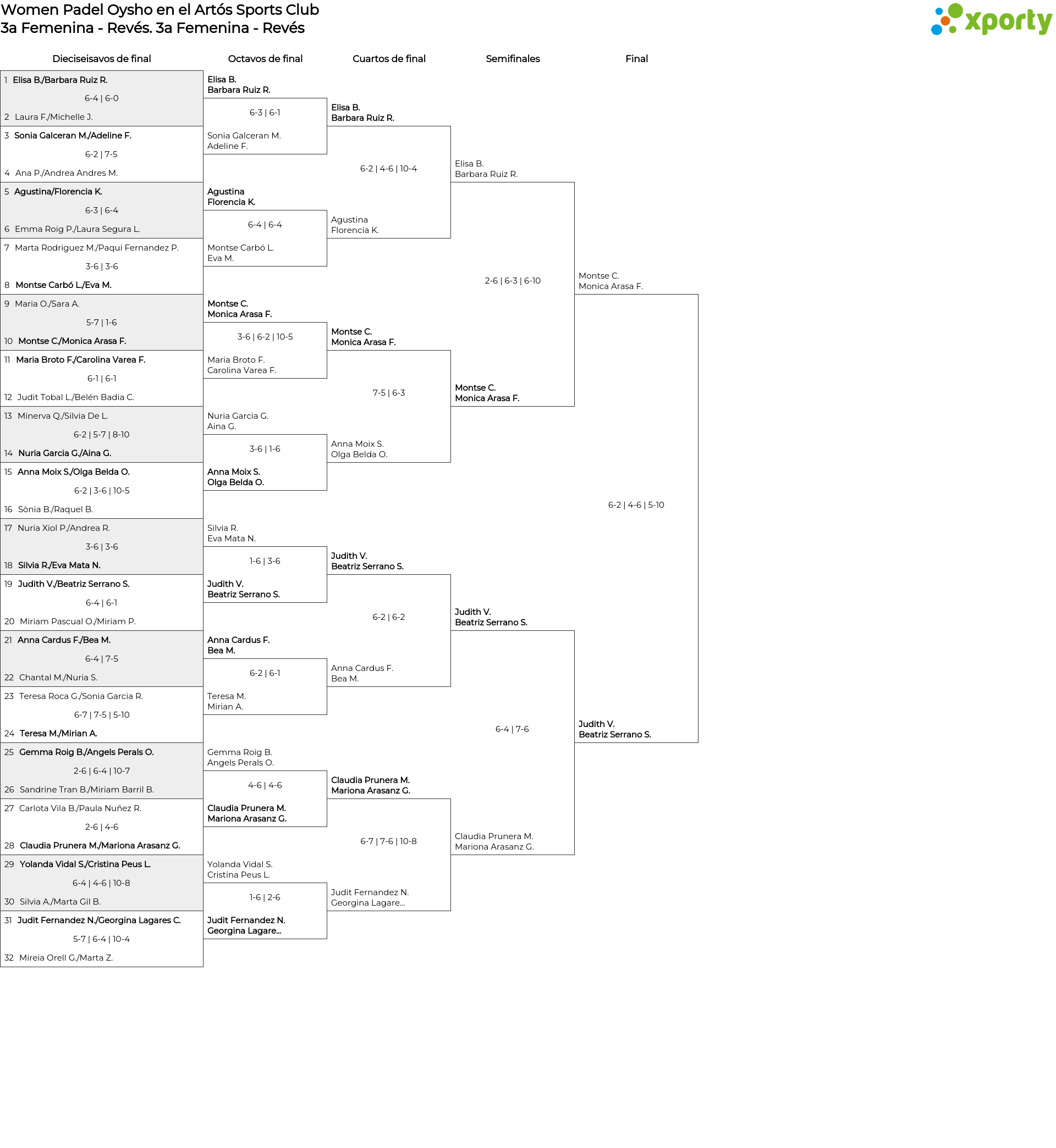 3a Femenina - Revés Cuadro de consolación