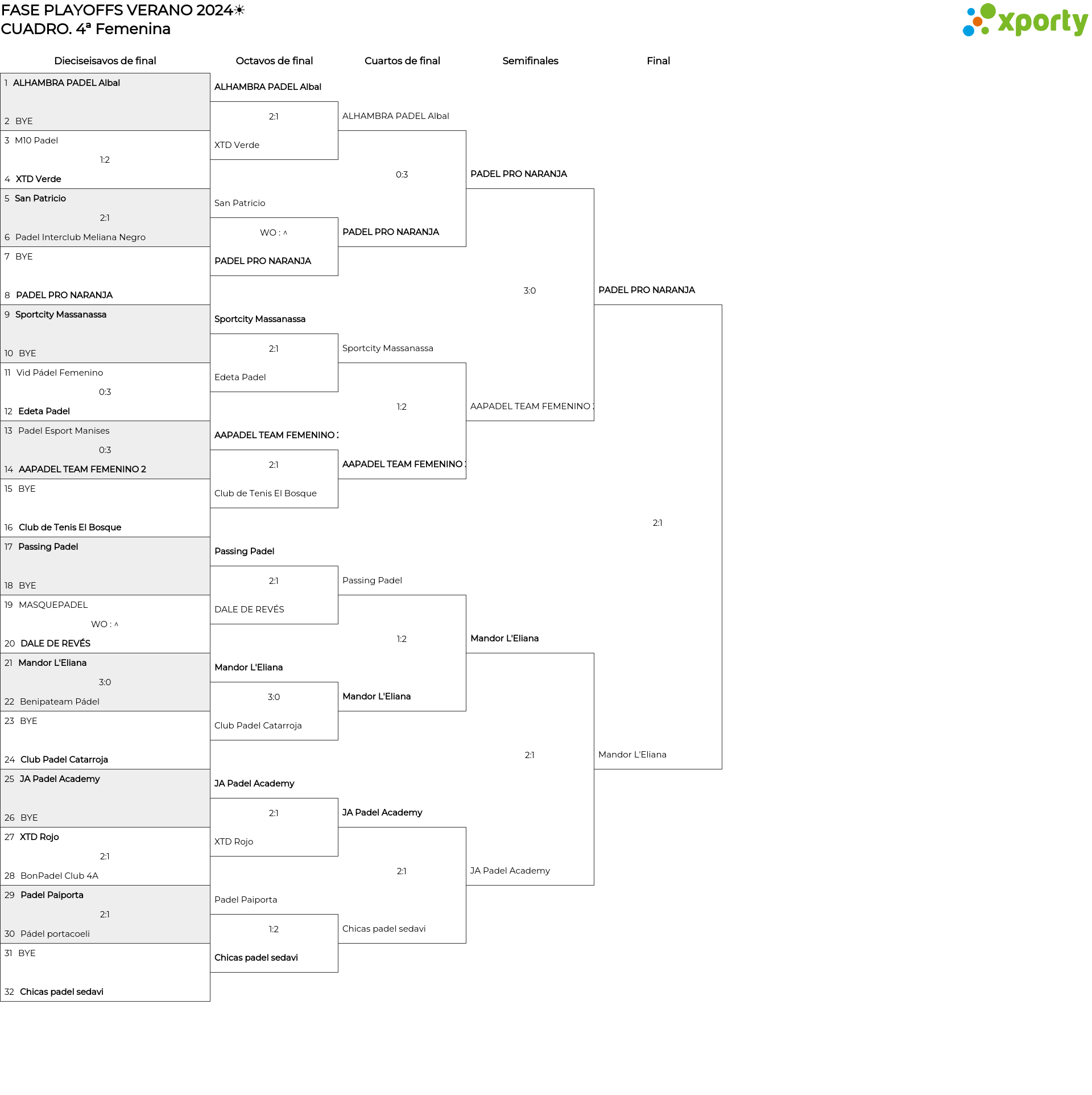 4ª Femenina main bracket