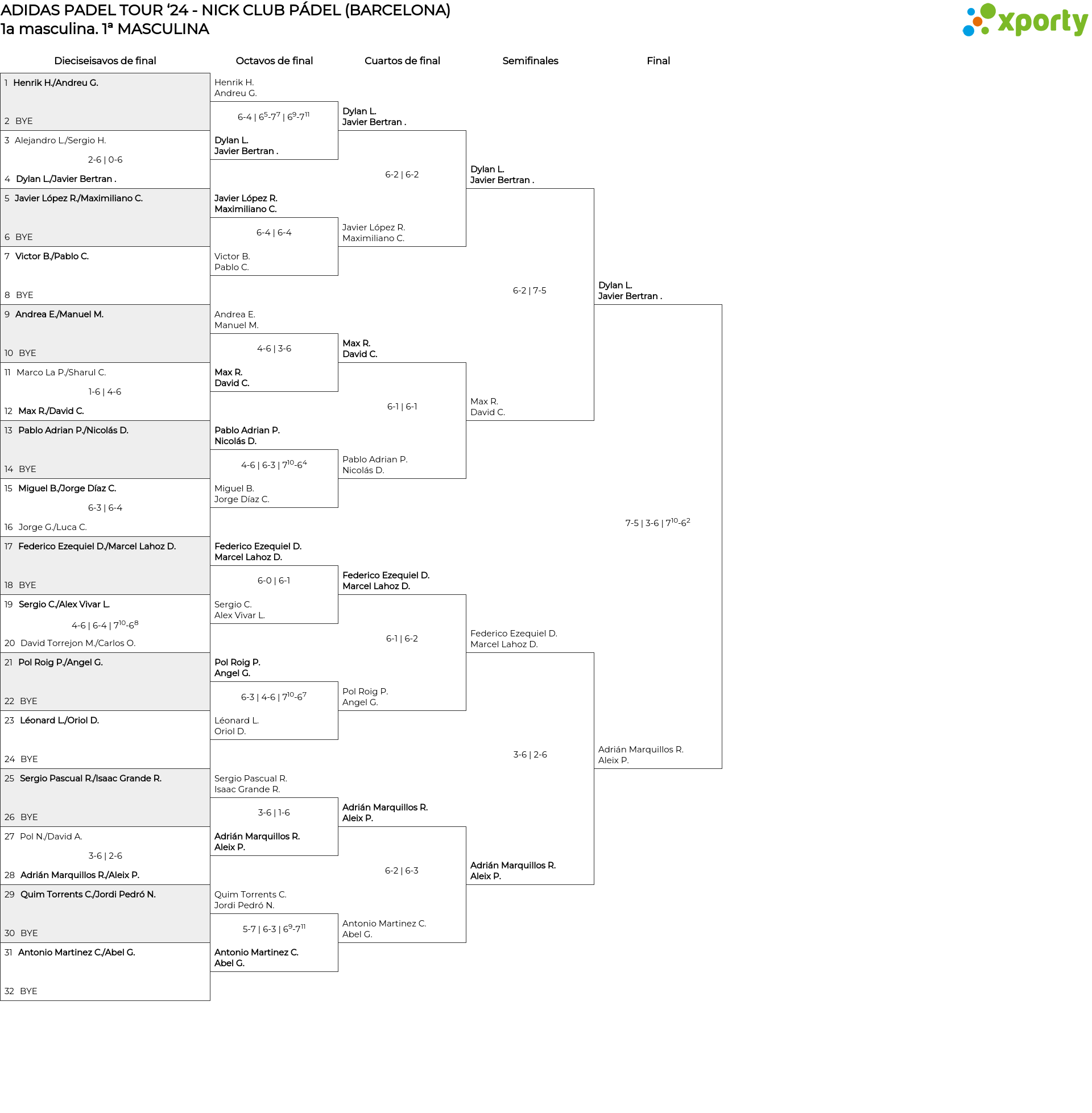 1ª MASCULINA main bracket