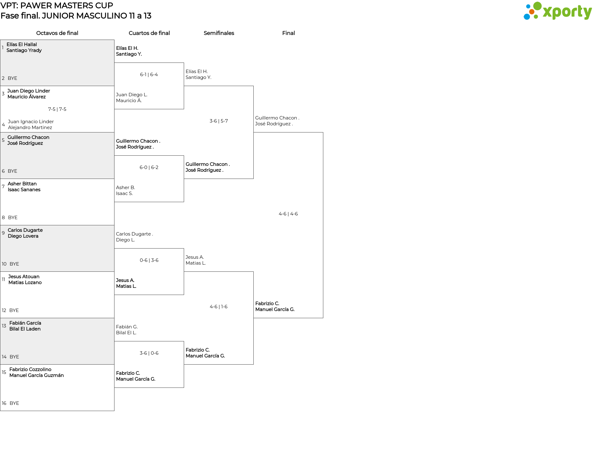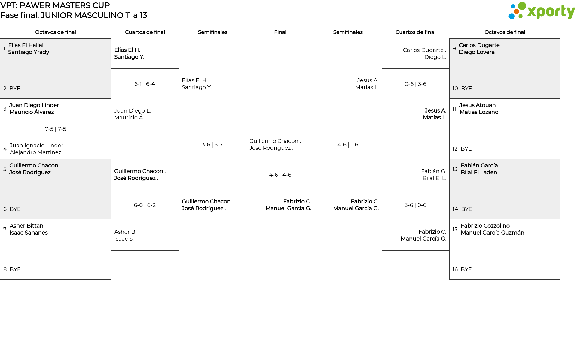 JUNIOR MASCULINO 11 a 13 main bracket