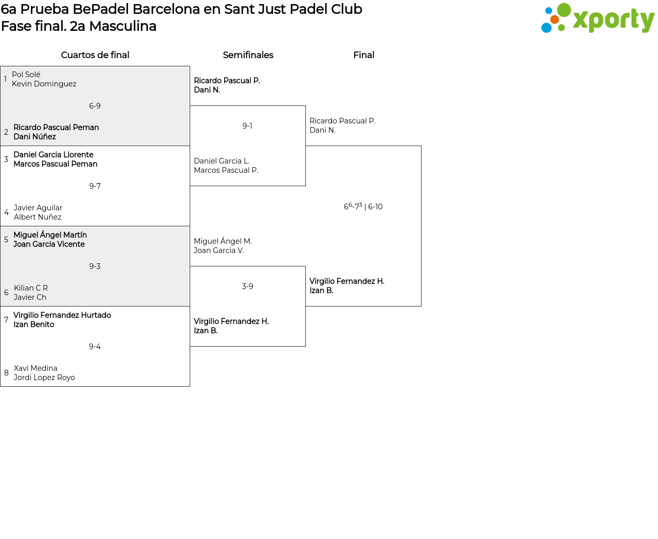 2a Masculina main bracket