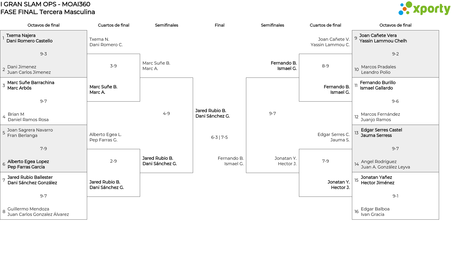 Tercera Masculina main bracket