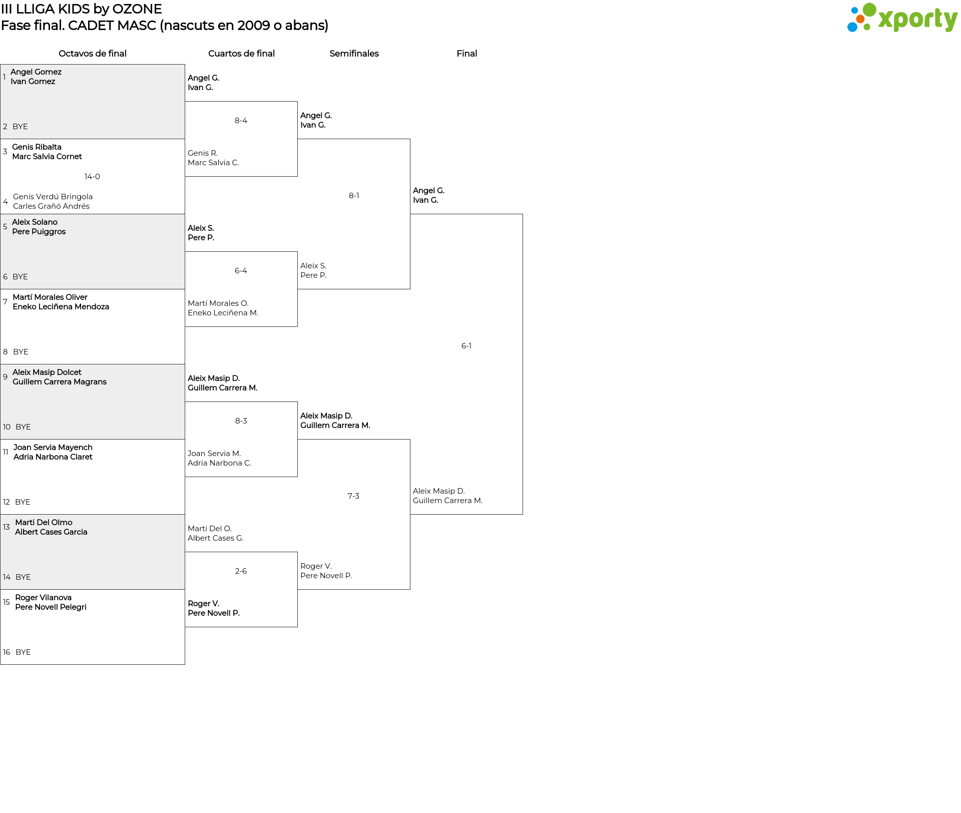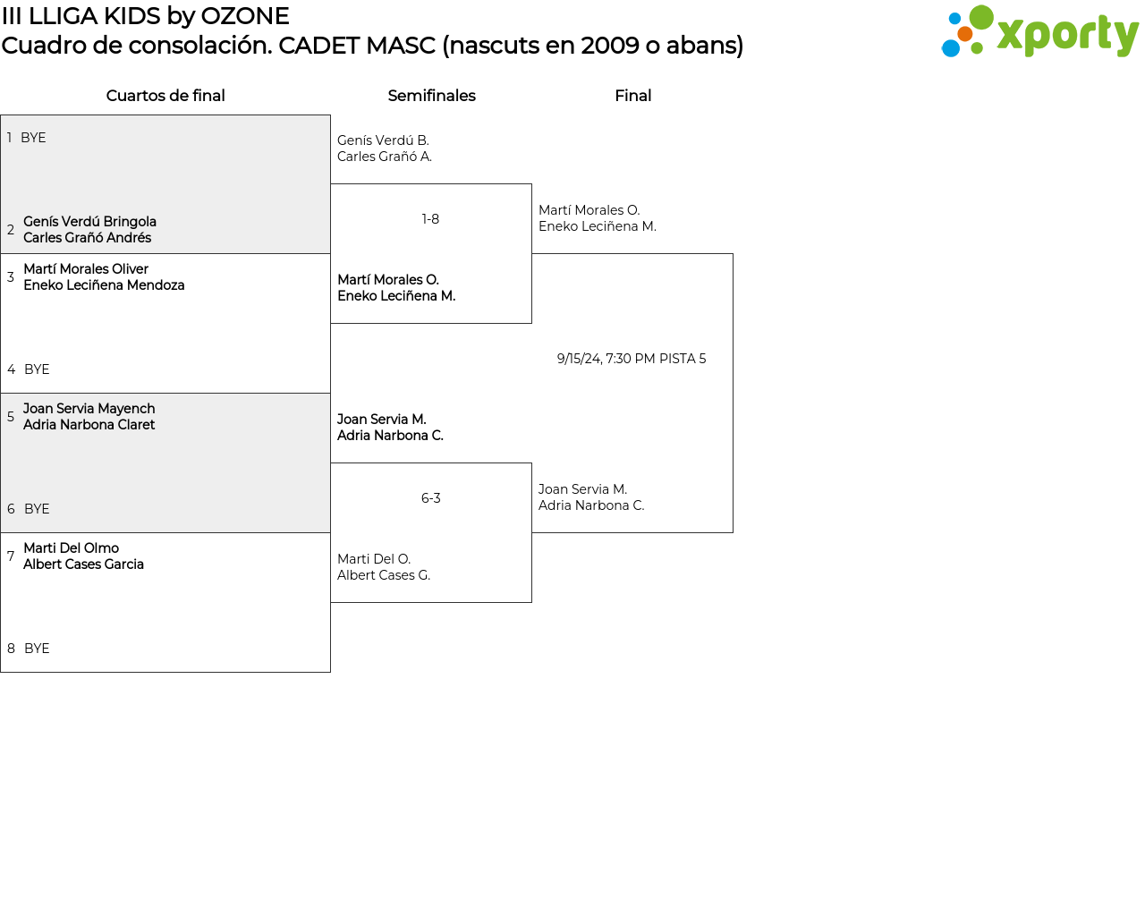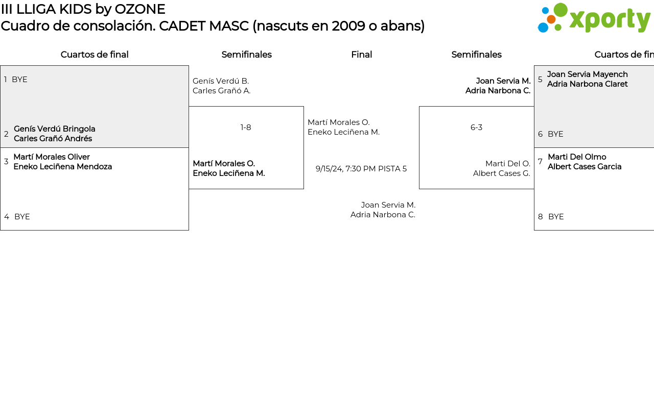 CADET MASC (nascuts en 2009 o abans) Cuadro de consolación