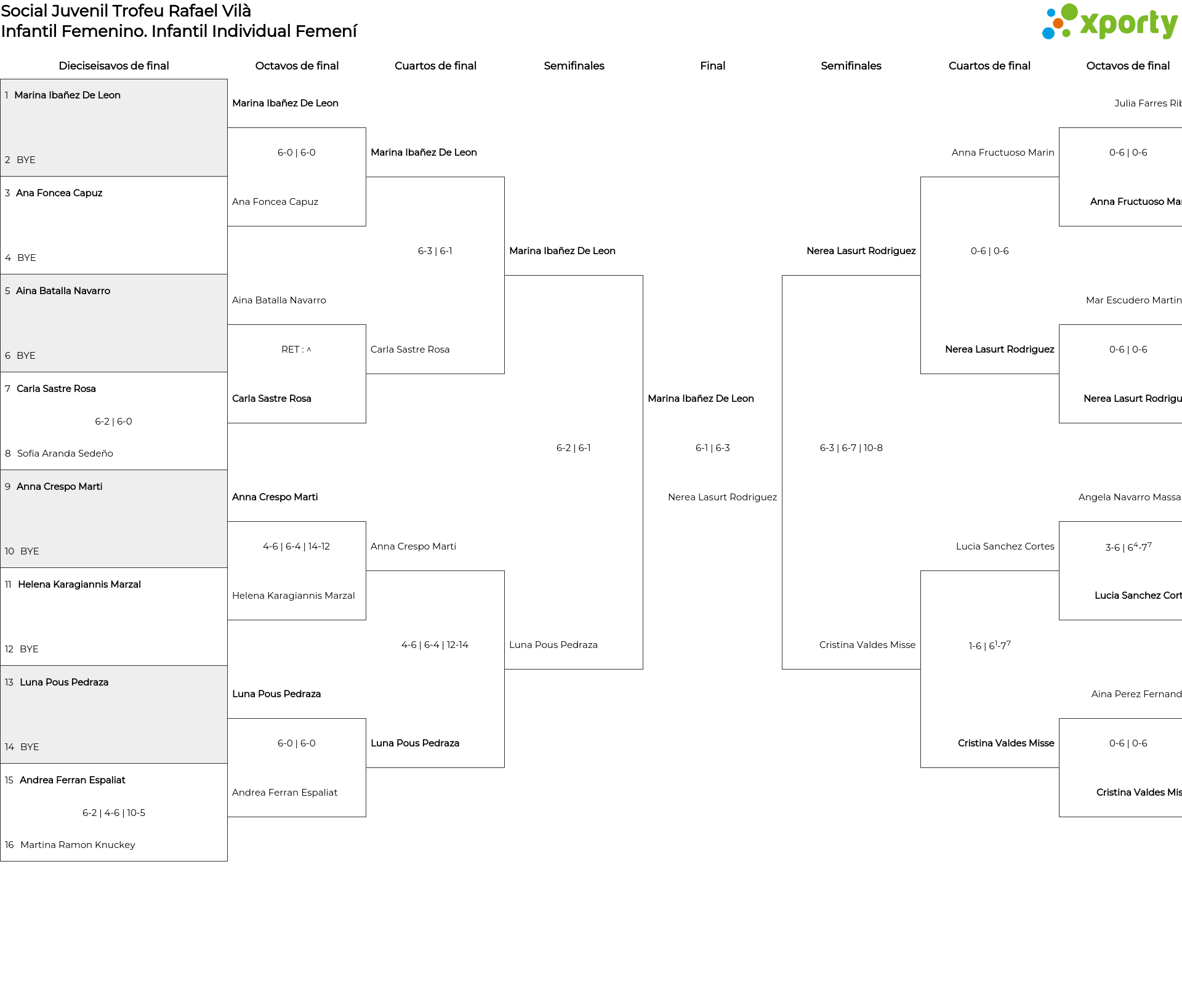 Infantil Individual Femení main bracket