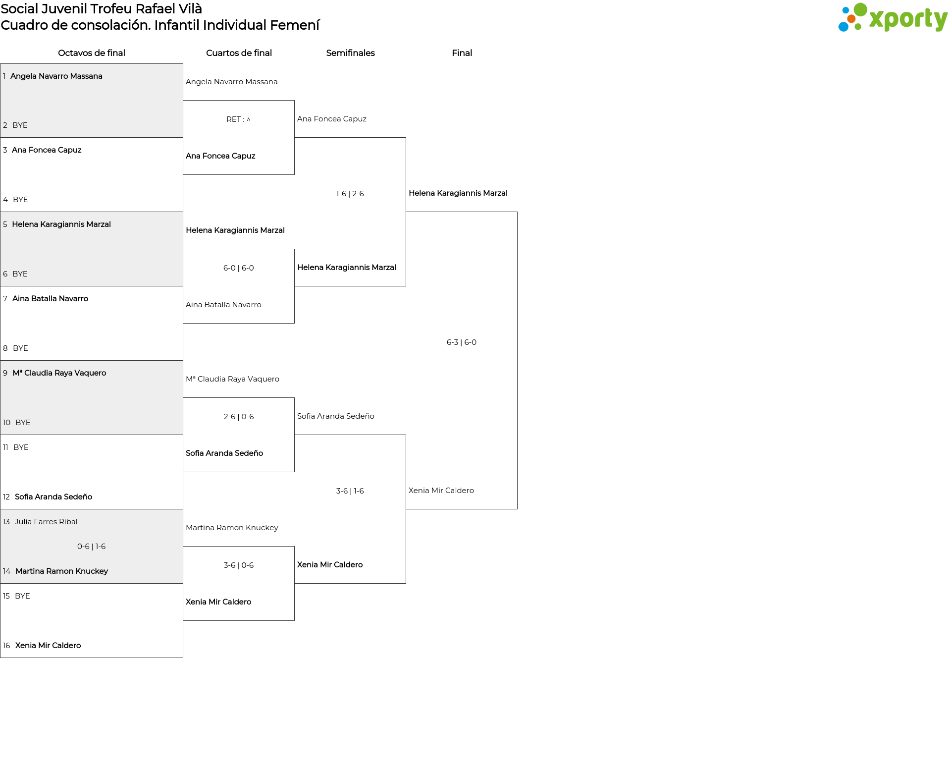 Infantil Individual Femení main bracket