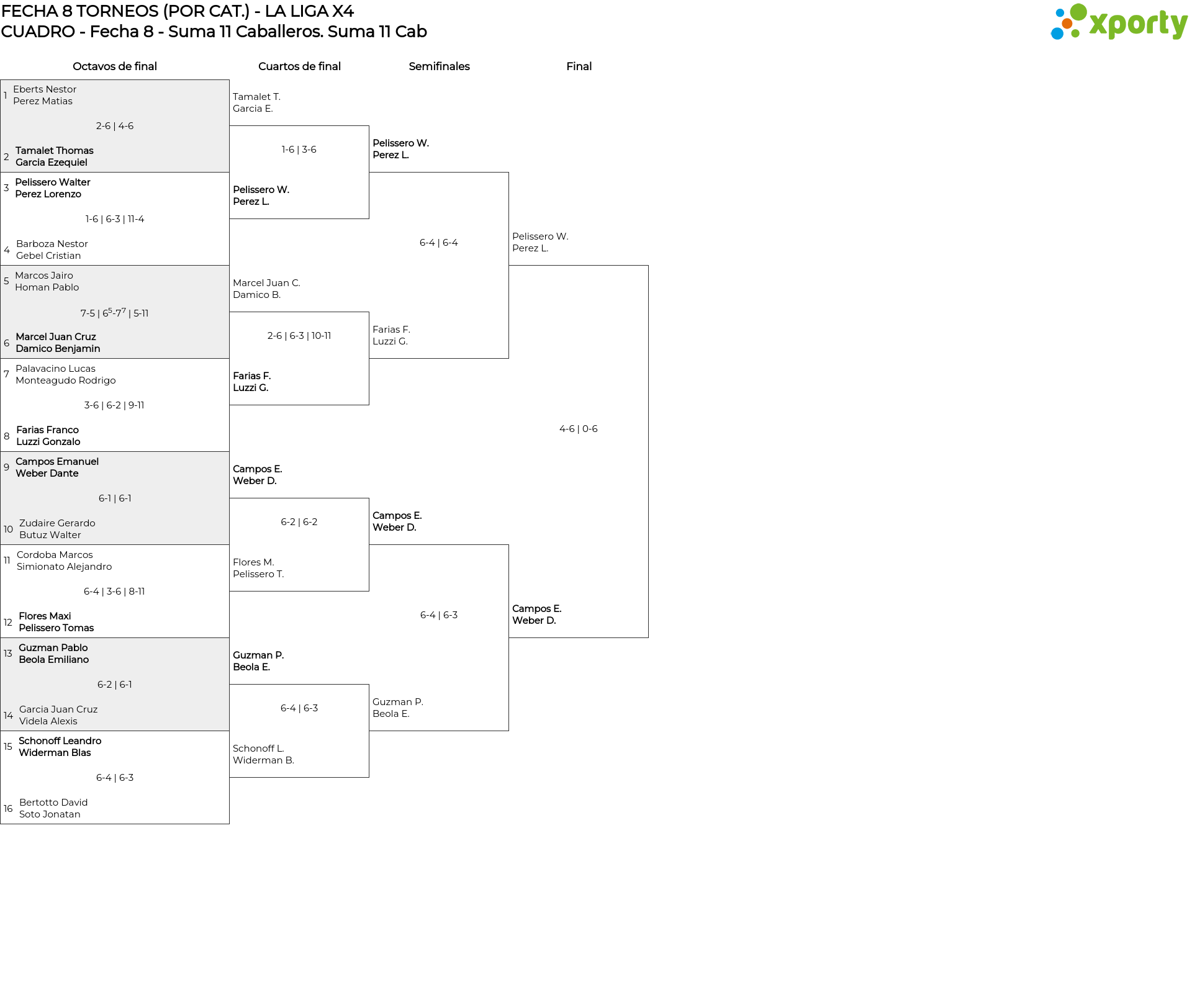 FECHA 8 TORNEOS (POR CAT.) - LA LIGA X4