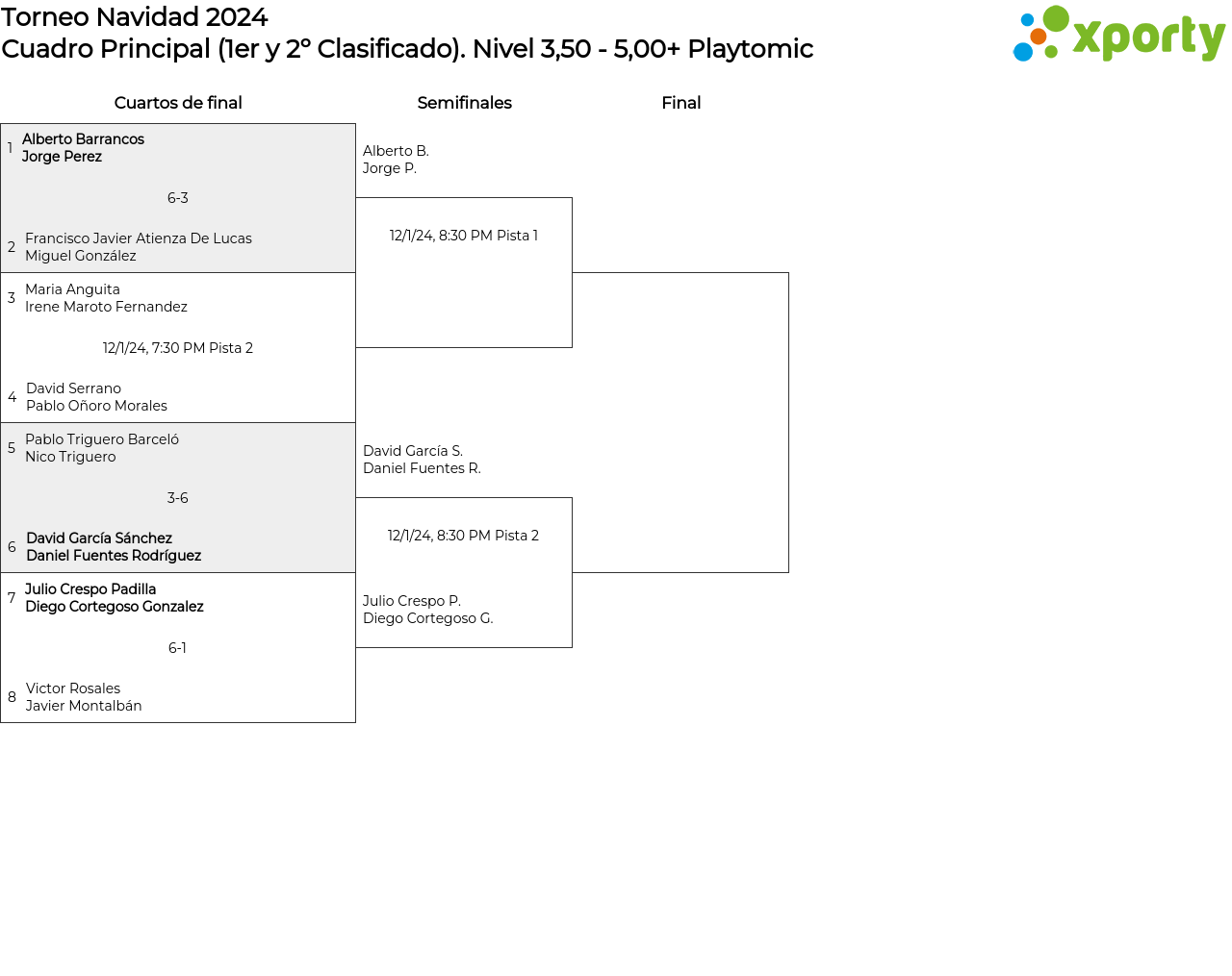 Fase de Grupos Cuadro Principal (1er y 2º Clasificado) Cuadro Consolación (3er Clasificado)Nivel 3,50 - 5,00+ Playtomic