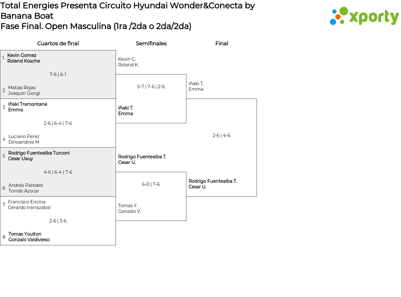 Open Masculina (1ra /2da o 2da/2da) main bracket
