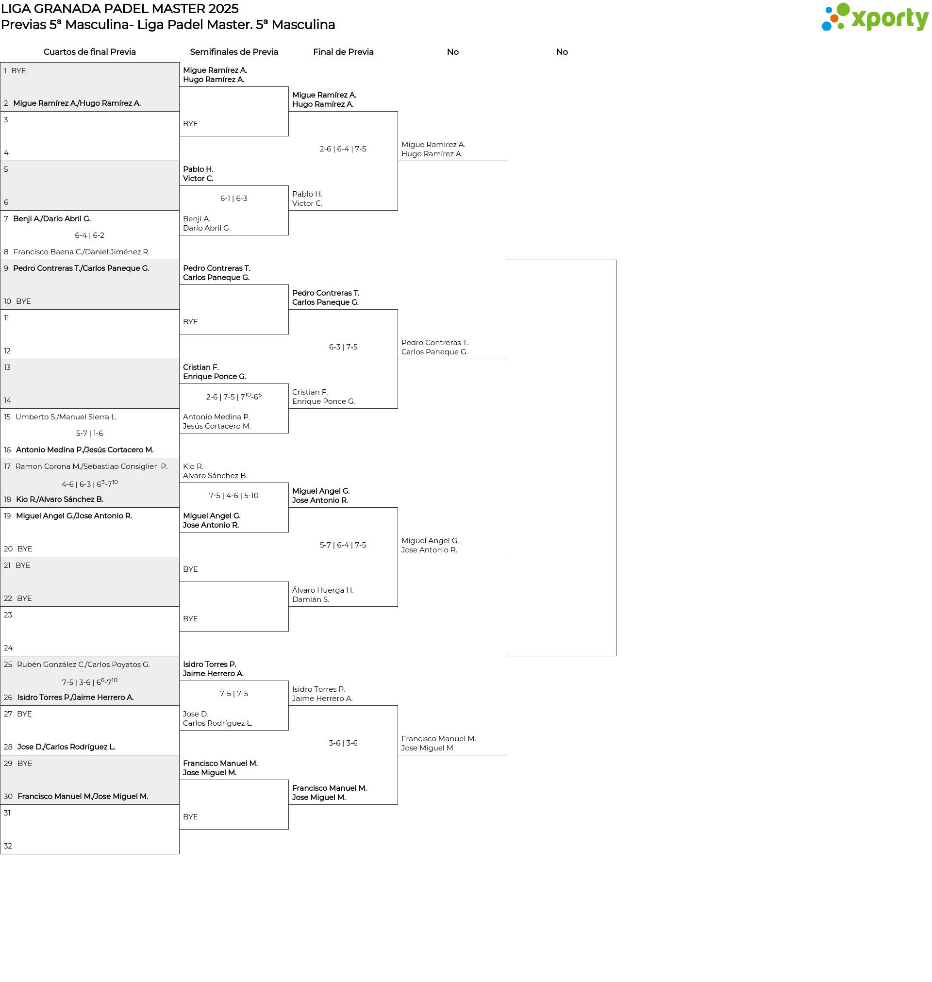 Liga Regular 5ª Masc Previas 5ª Masculina- Liga Padel Master 5ª Masculina - Master Provincial Granada5ªB Masculina
