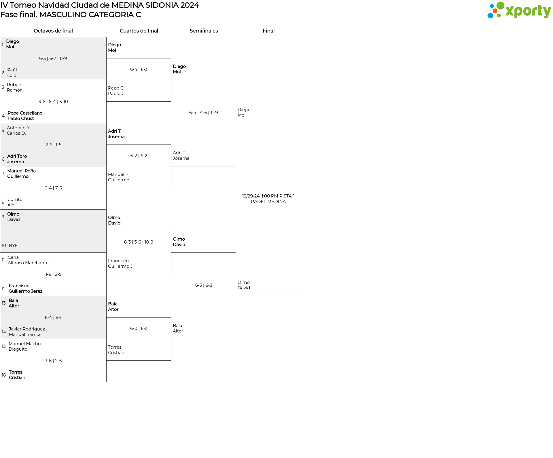 Sunday, December 29, 2024, 1:00 PM . PISTA 1 PADEL MEDINA