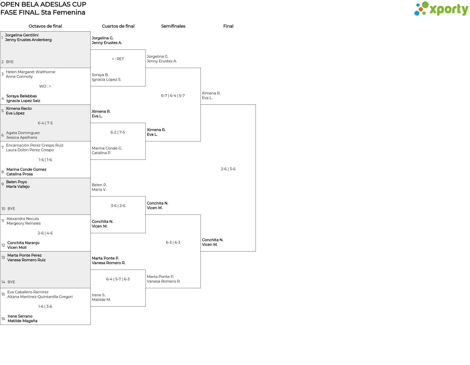 5ta Femenina main bracket