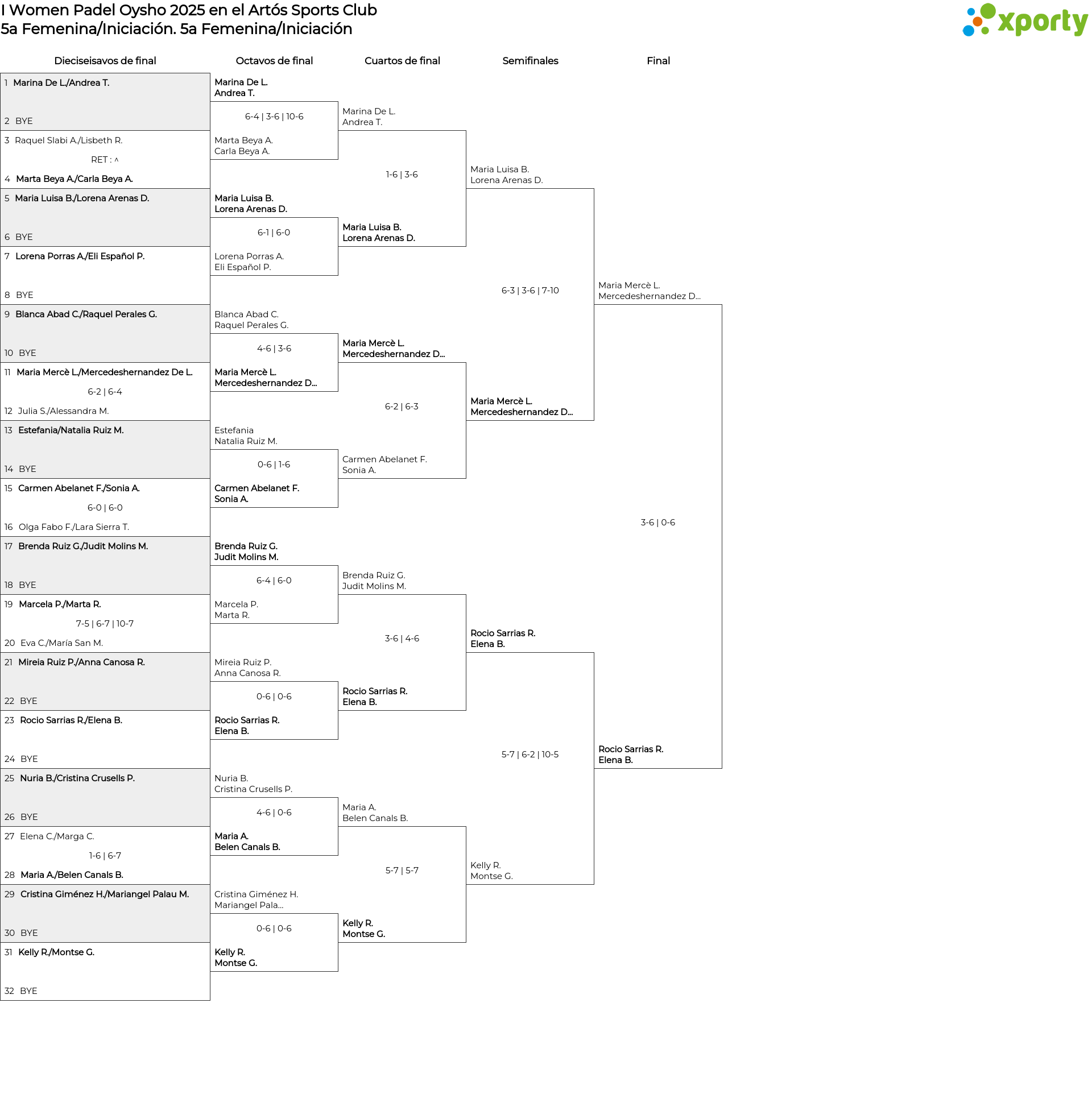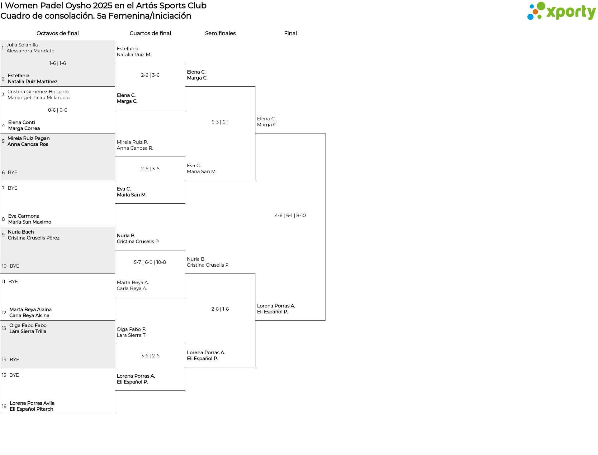 5a Femenina/Iniciación main bracket
