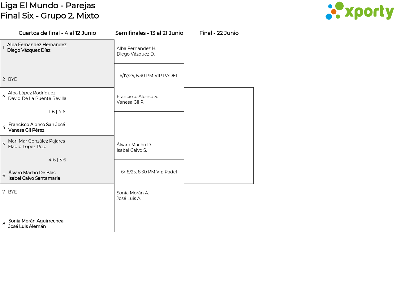 Cuartos de final - 4 al 12 Junio (1 match/game)