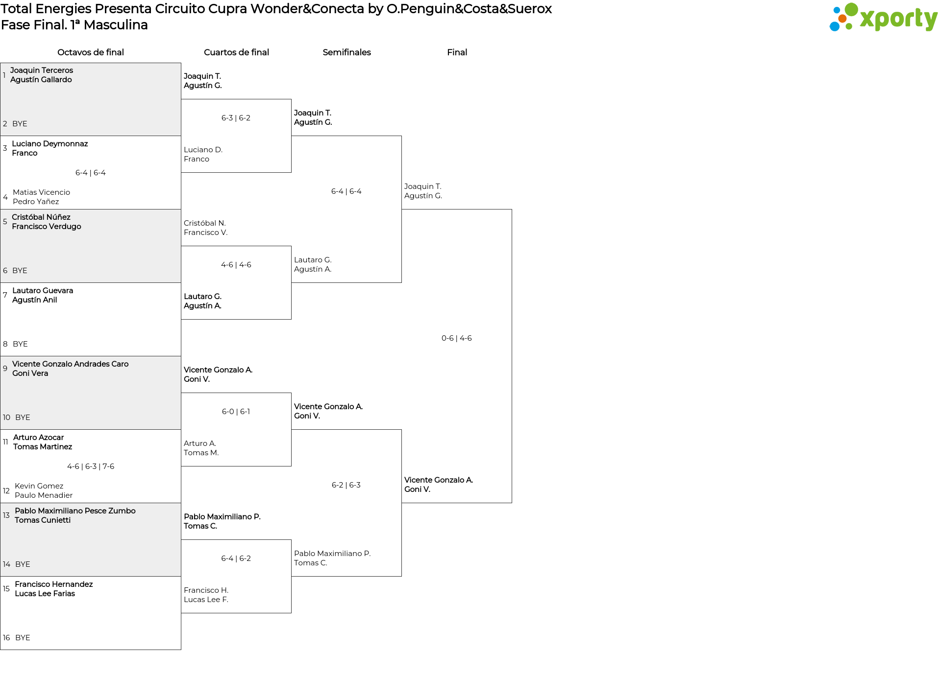 1ª Masculina main bracket