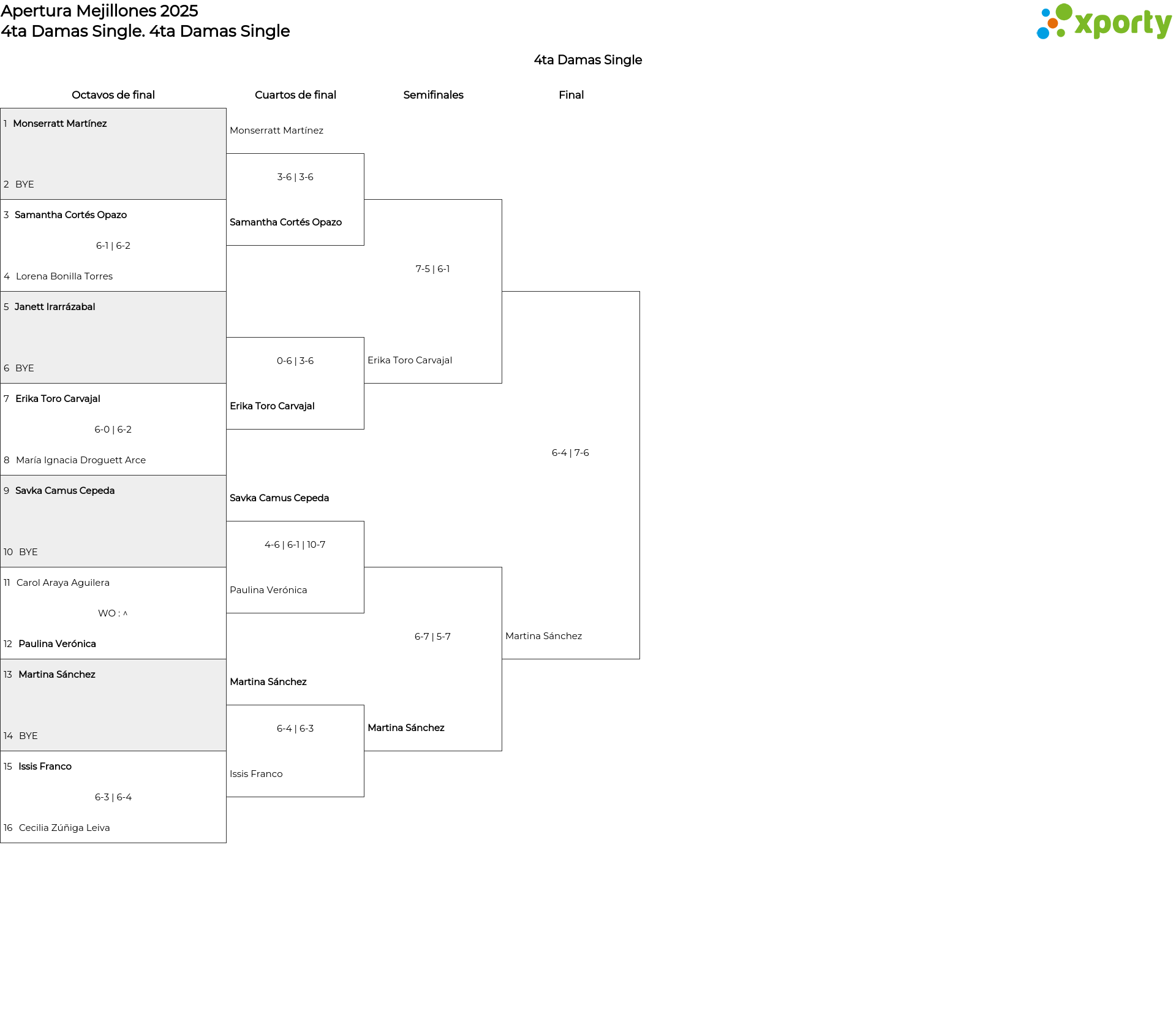 4ta Damas Single4ta Varones Single