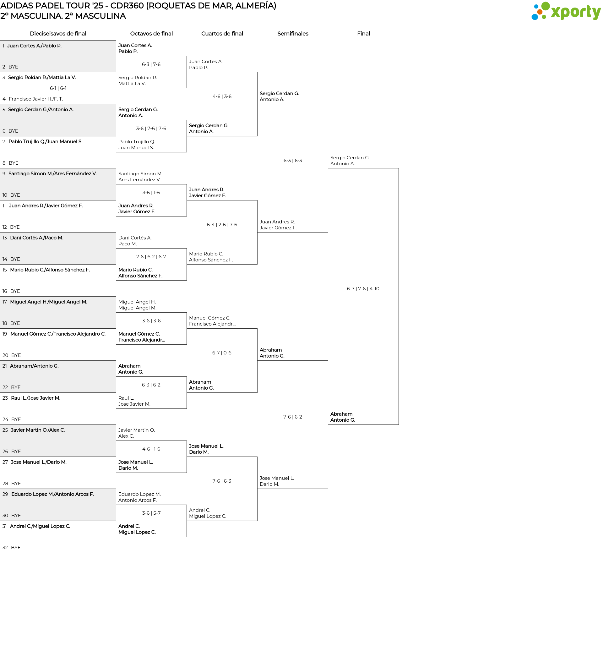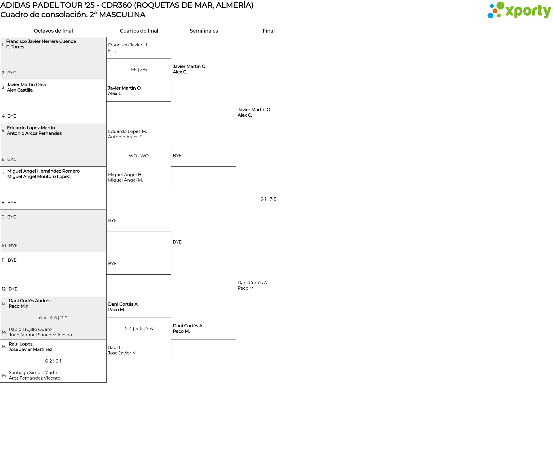 2ª MASCULINA main bracket