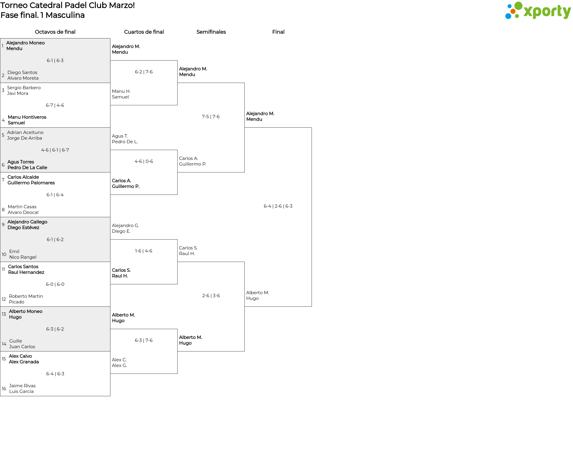 1 Masculina main bracket