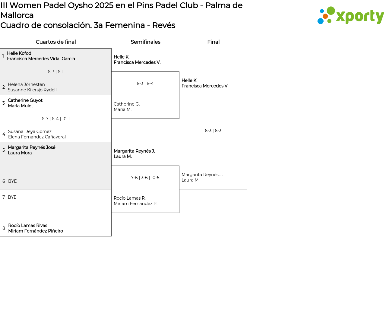 3a Femenina - Revés Cuadro de consolación