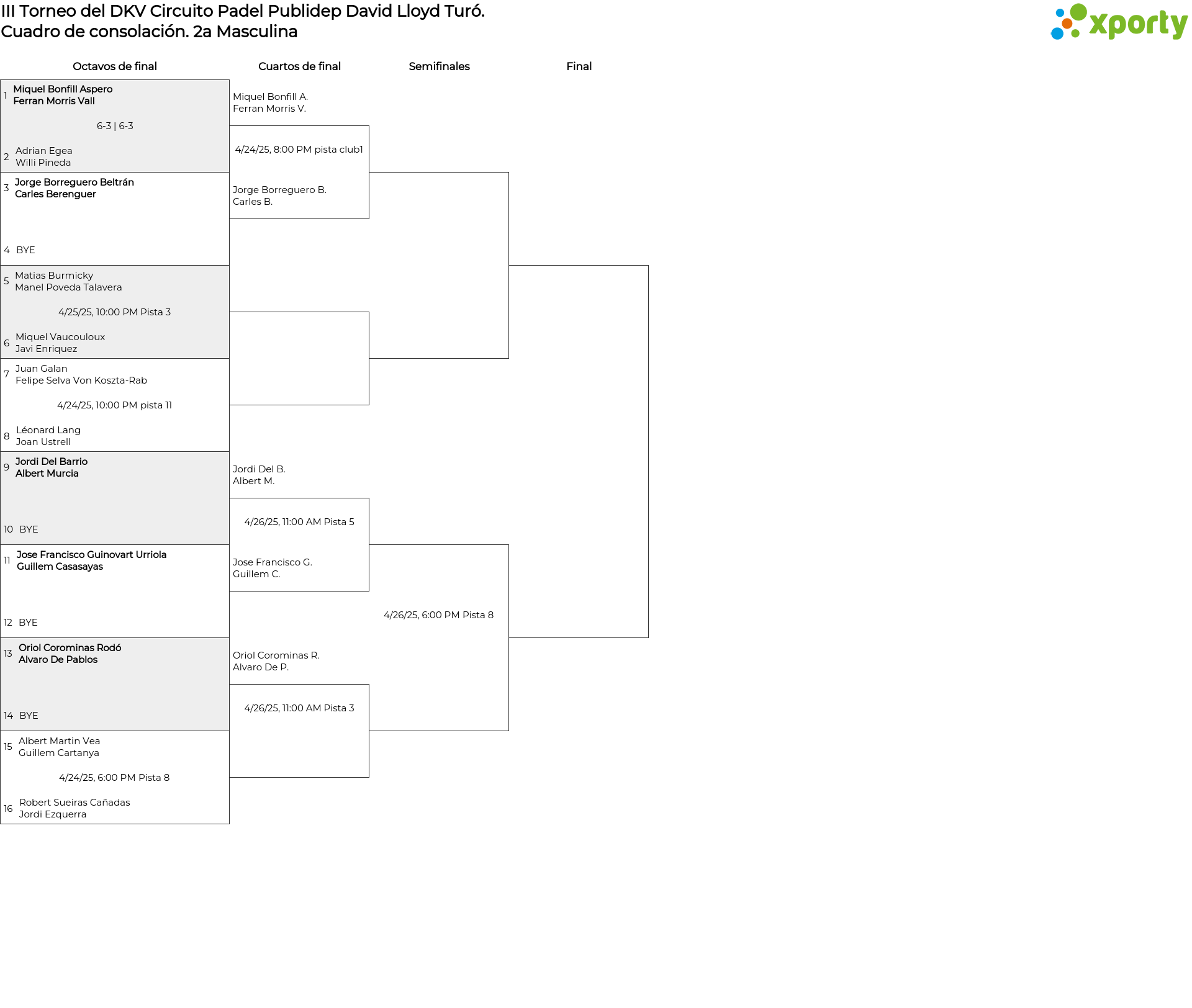 Saturday, April 26, 2025, 9:00 AM . Pista 4