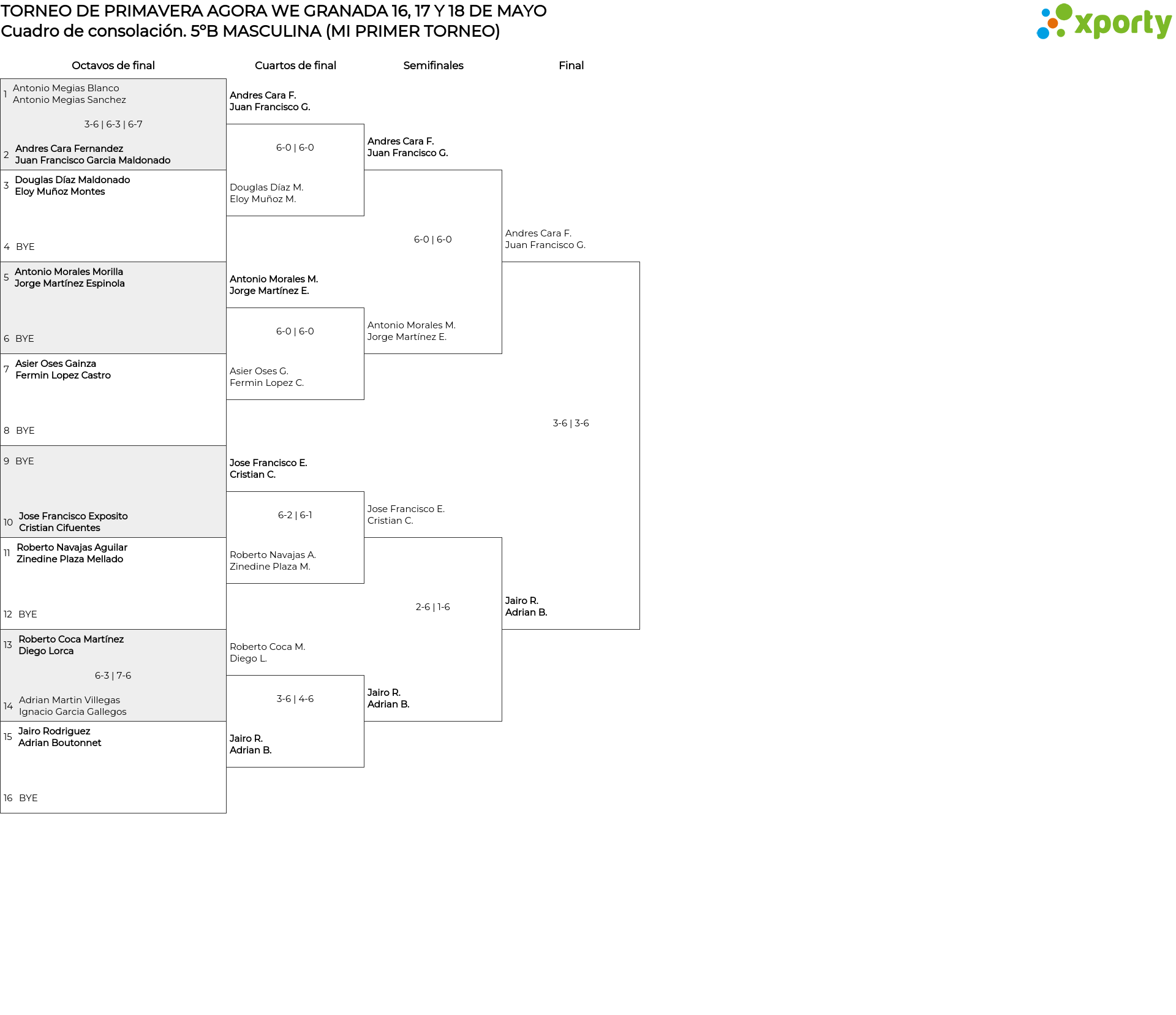 5ºB MASCULINA (MI PRIMER TORNEO) Cuadro de consolación