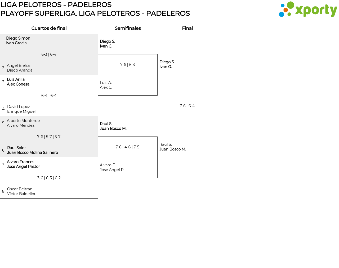 LIGA PELOTEROS - PADELEROS main bracket