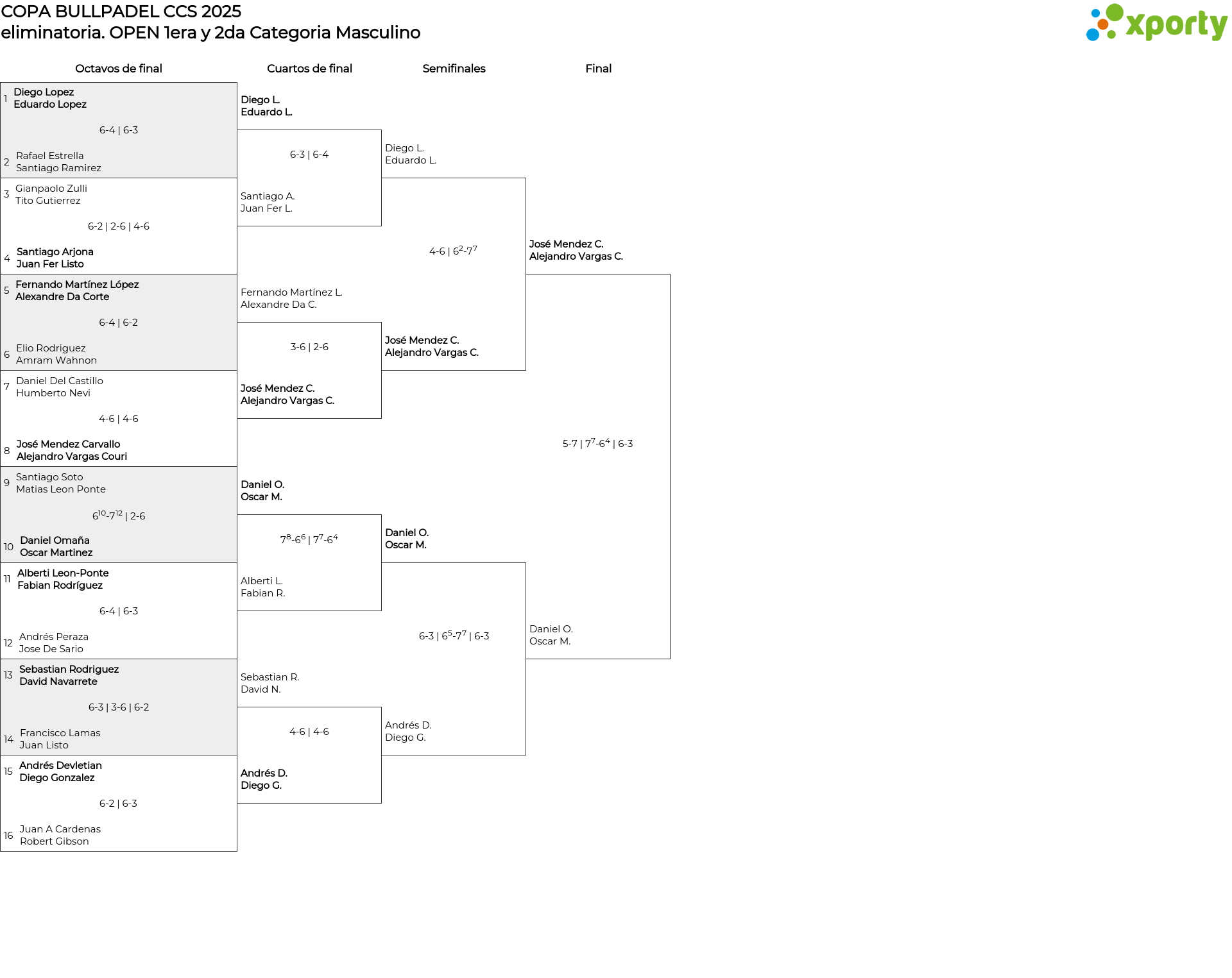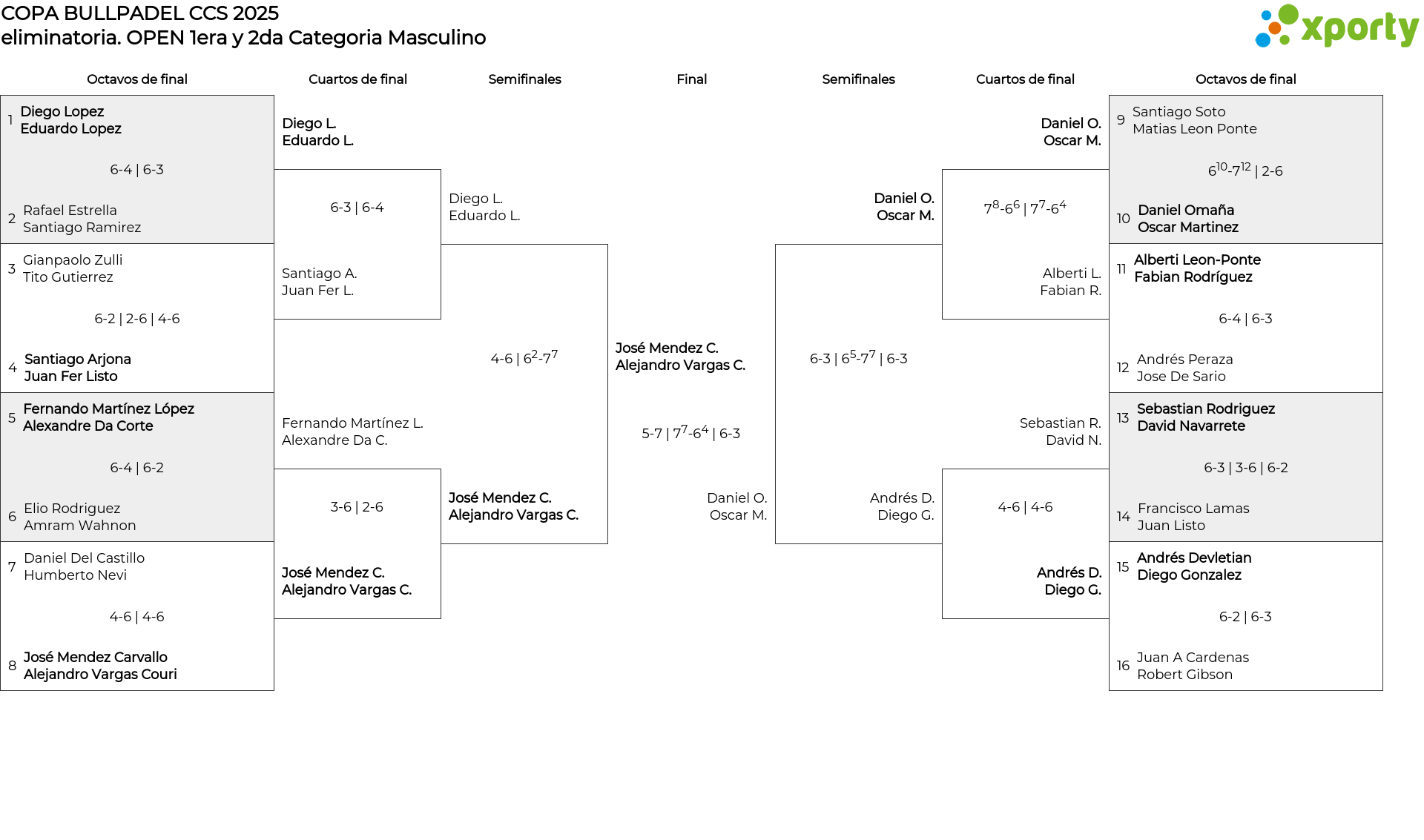 OPEN 1era y 2da Categoria Masculino main bracket