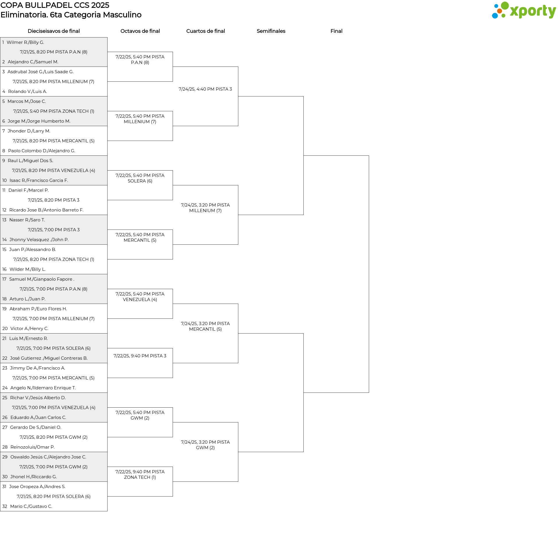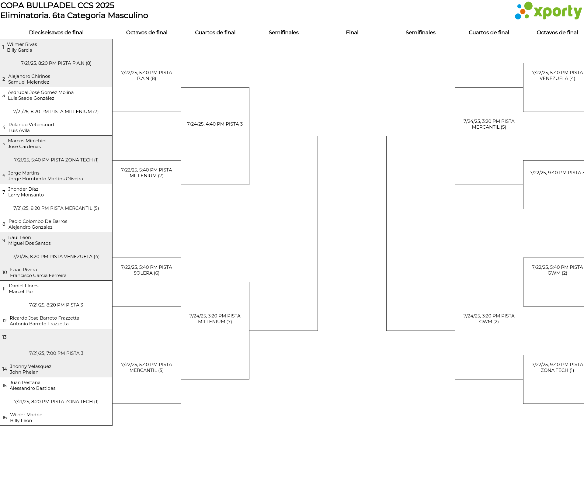 6ta Categoria Masculino main bracket