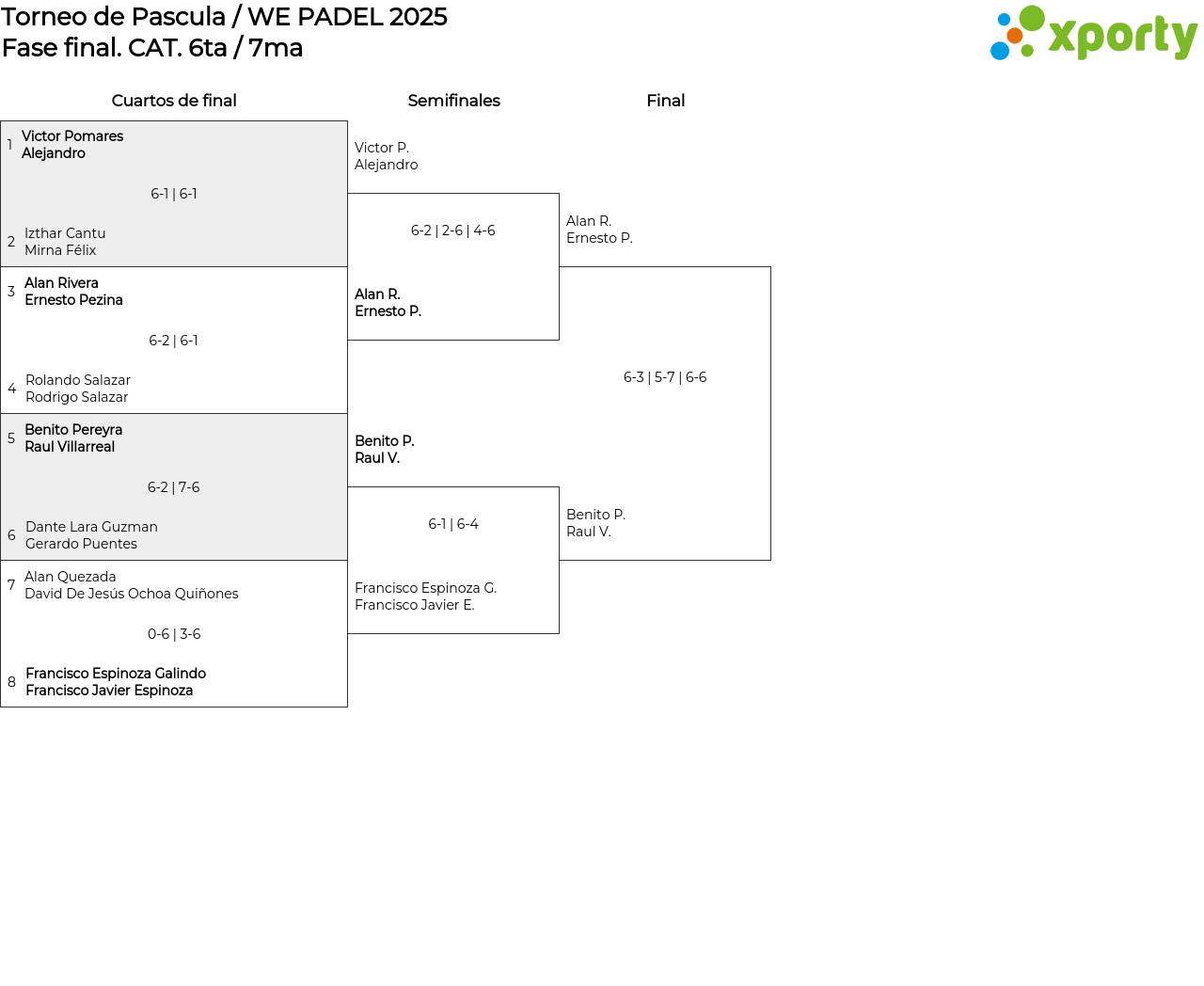 Cuartos de final (1 match/game)