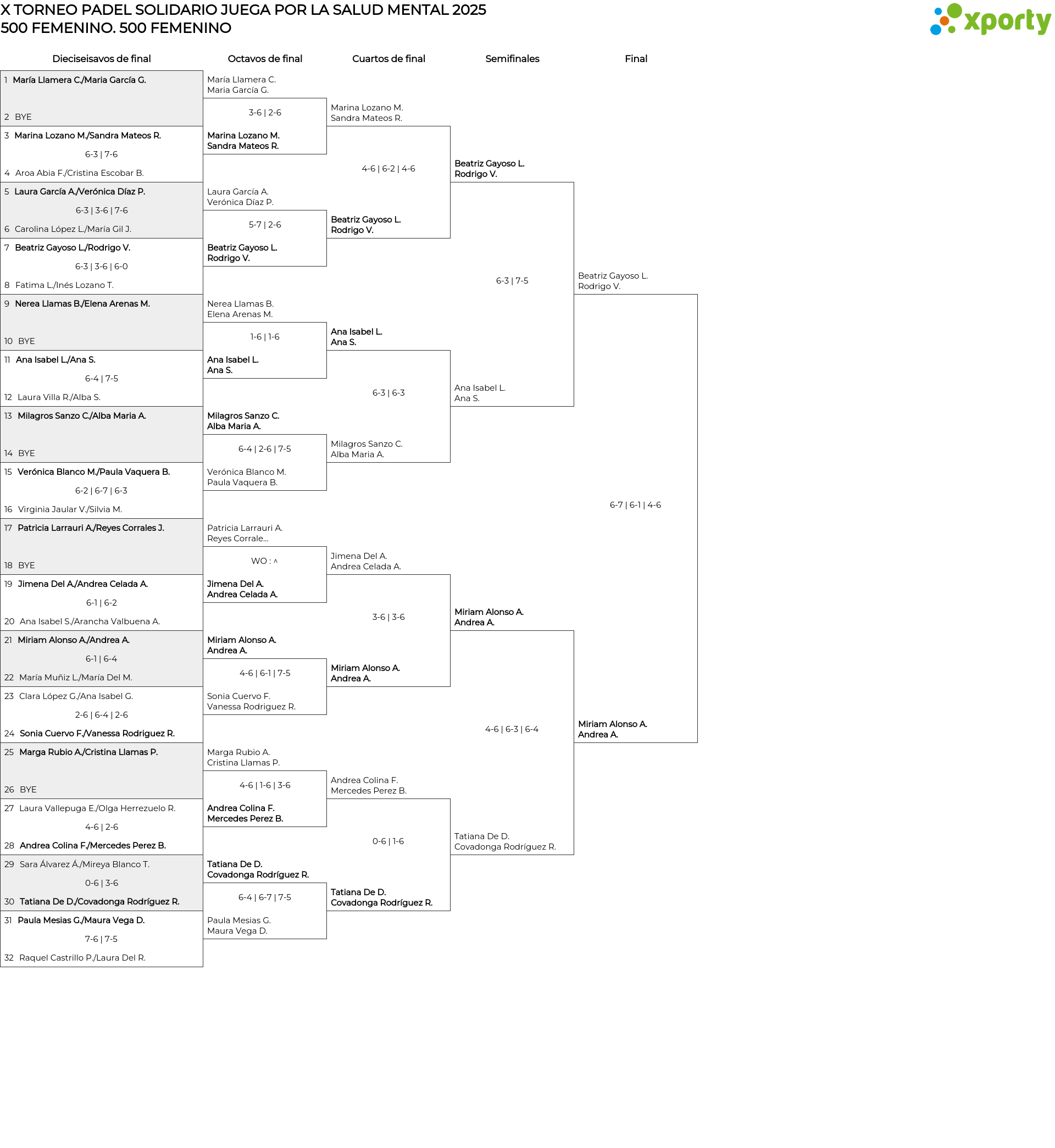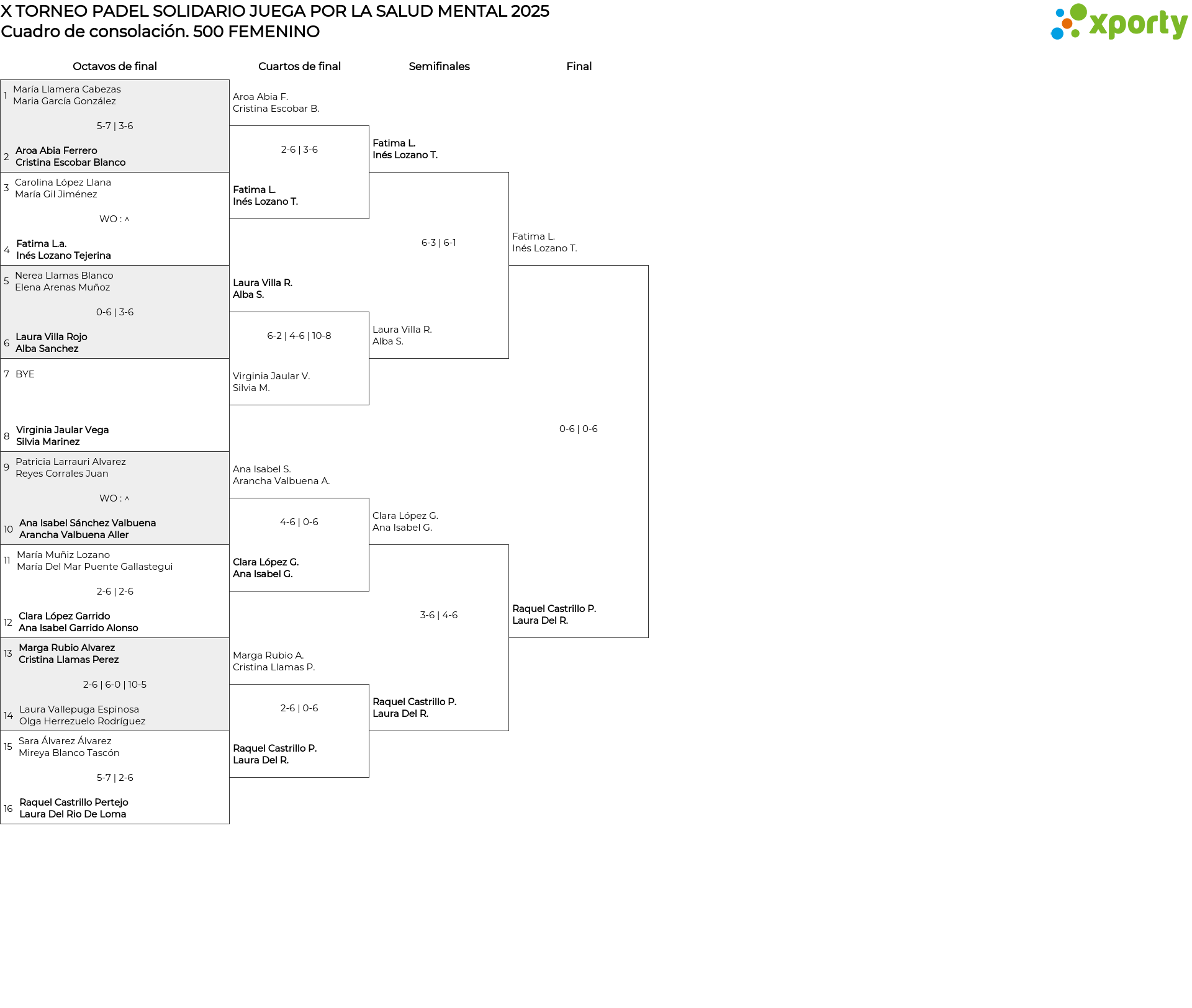 500 FEMENINO Cuadro de consolación