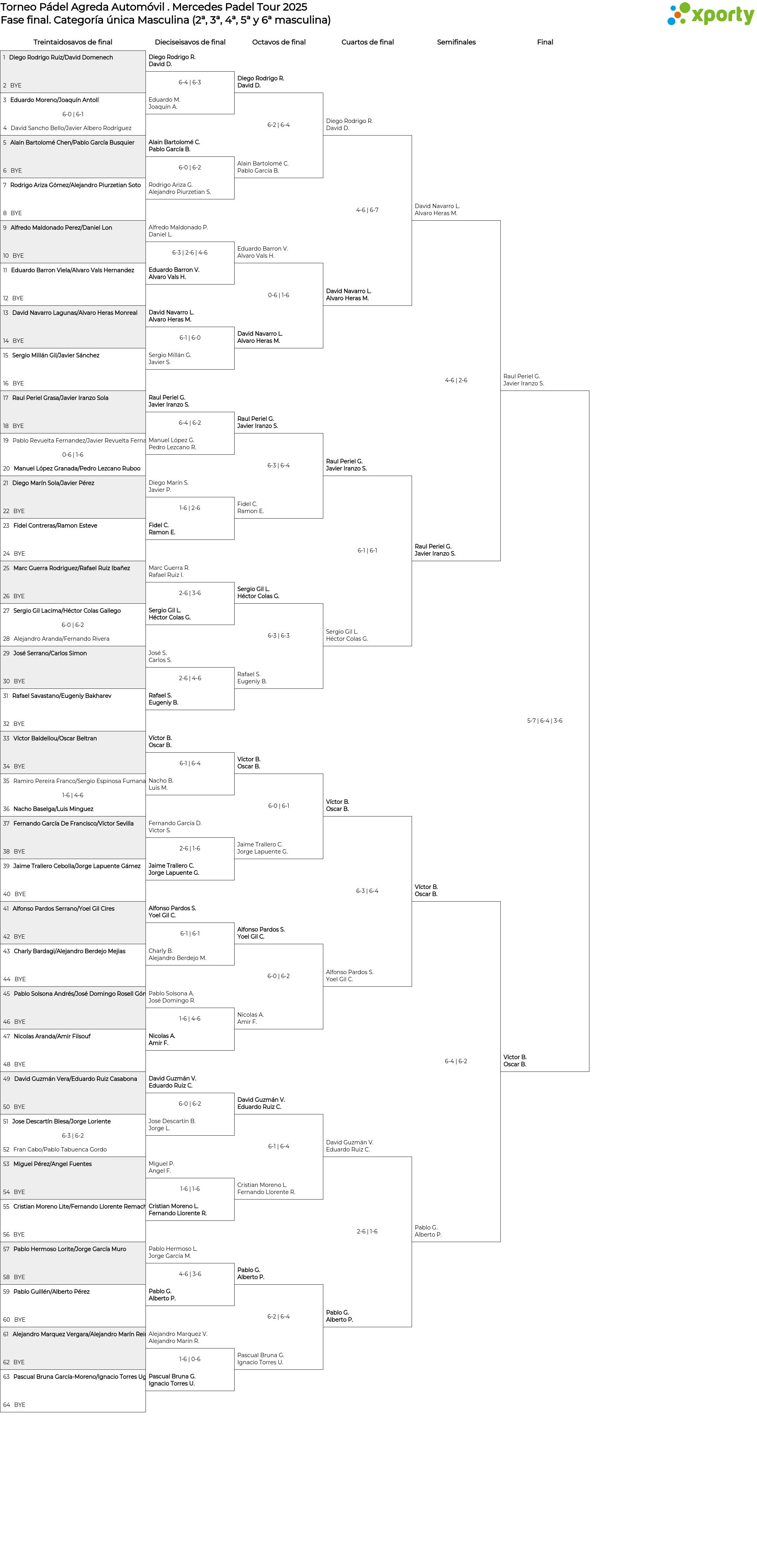 Categoría única Masculina (2ª, 3ª, 4ª, 5ª y 6ª masculina) main bracket