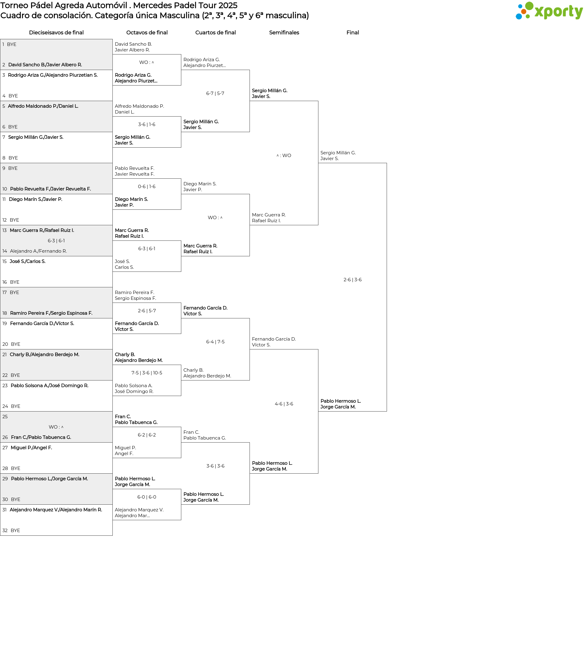 Categoría única Masculina (2ª, 3ª, 4ª, 5ª y 6ª masculina) Cuadro de consolación