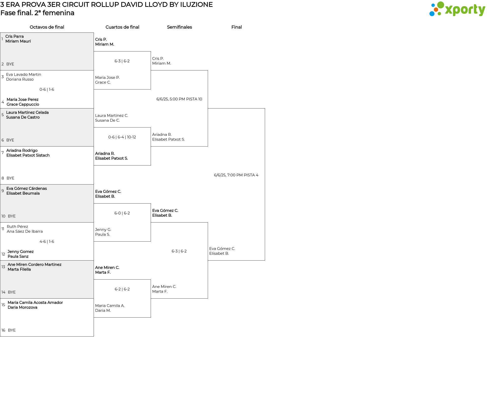 2ª femenina main bracket