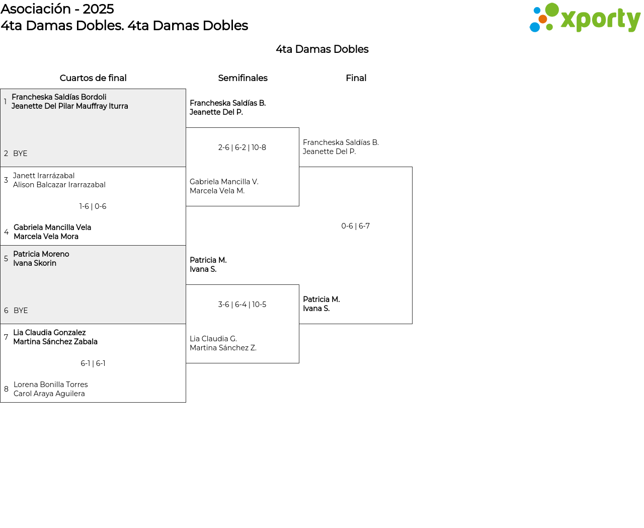 4ta Damas Dobles main bracket