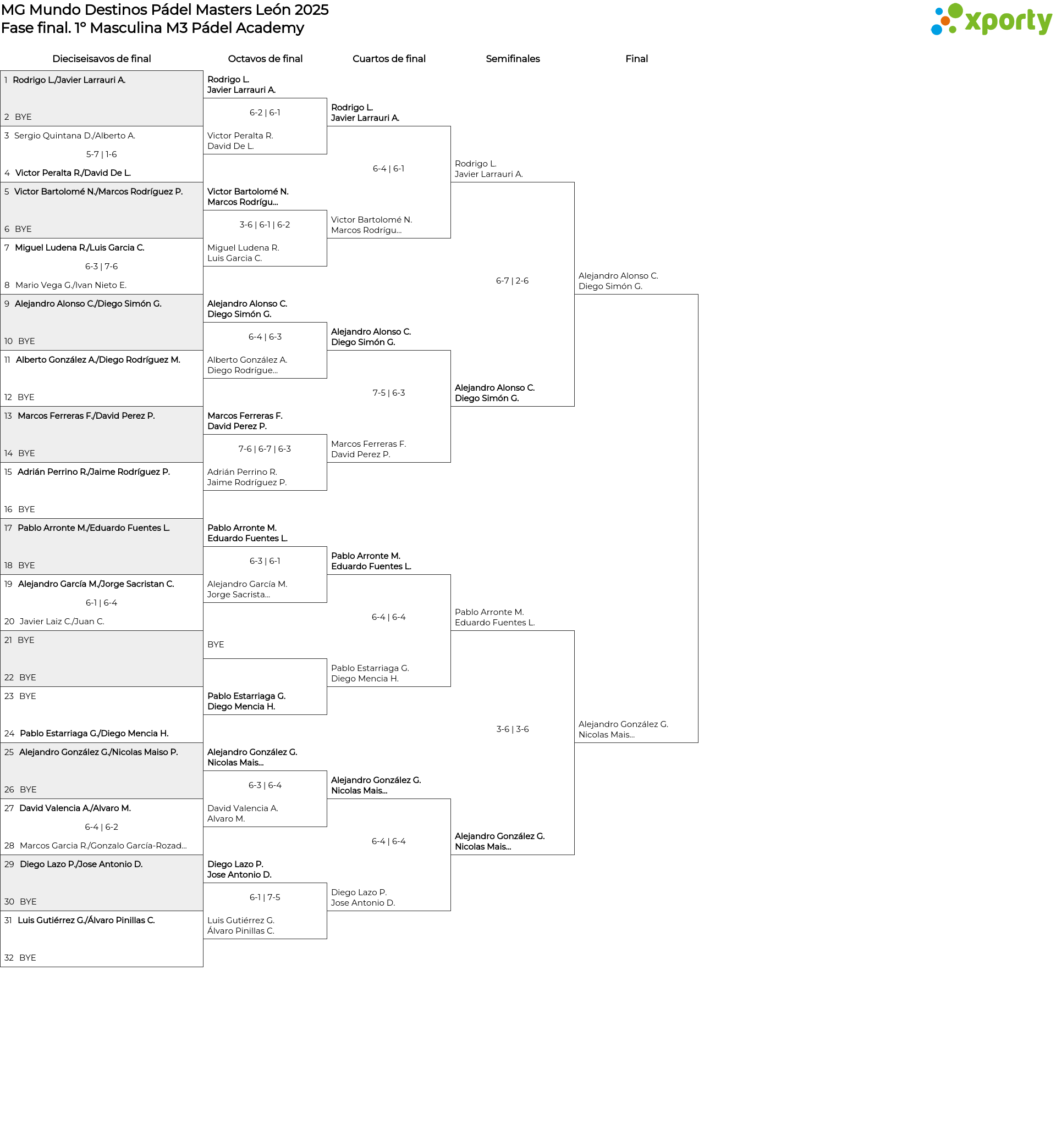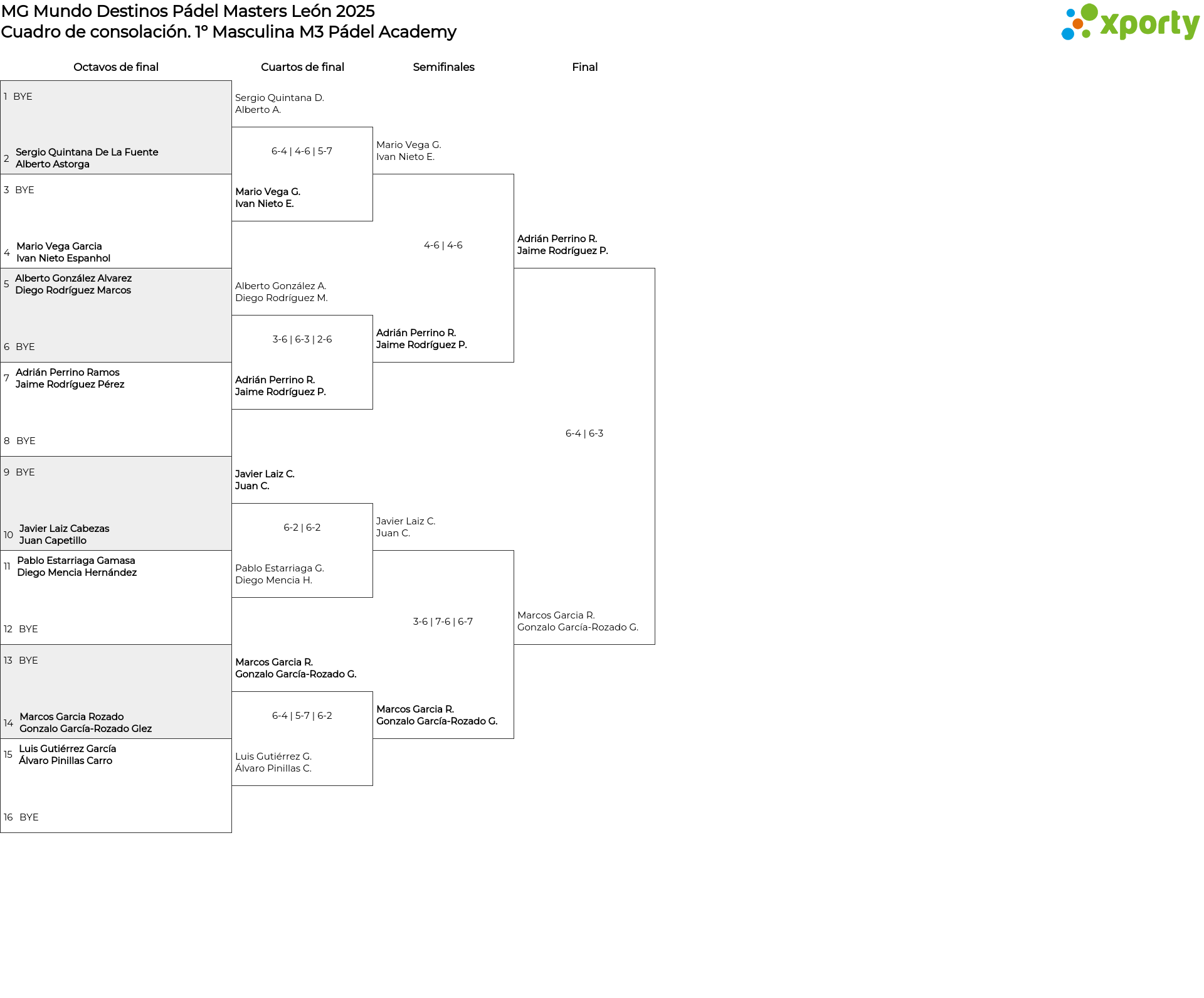 1º Masculina M3 Pádel Academy Cuadro de consolación
